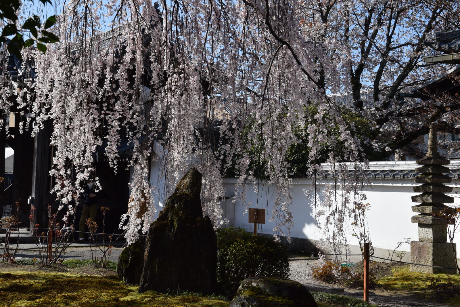 本満寺のしだれ桜は樹齢約90年,このあとで行くことになる円山公園のしだれ桜の姉妹樹です。