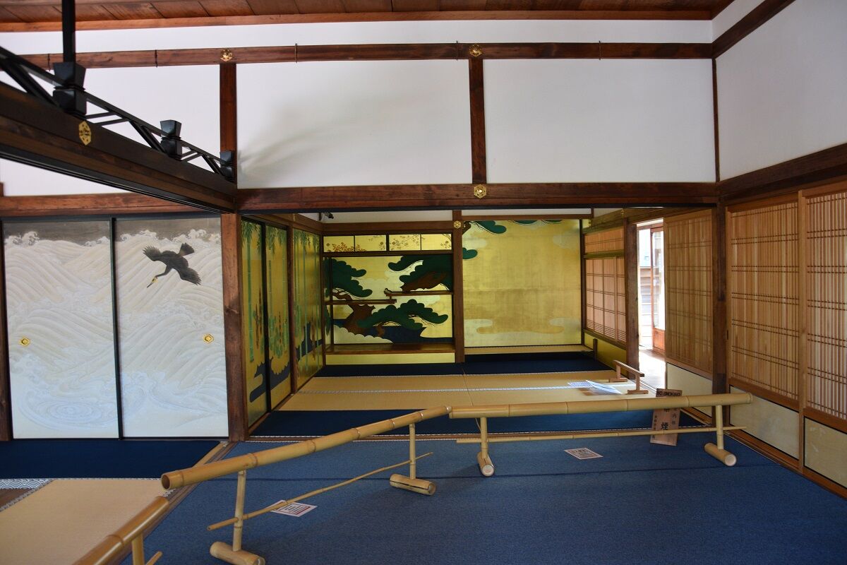 雲母刷りの桐紋様を降り続く雪に見立てていることが特徴だそうです。なお,圓徳院にあるものは高精細複製品であって,原本は京都国立博物館と石川県七尾美術館にあります。また,現在方丈を飾っている襖絵は木下育應や志村正による近代のものです。