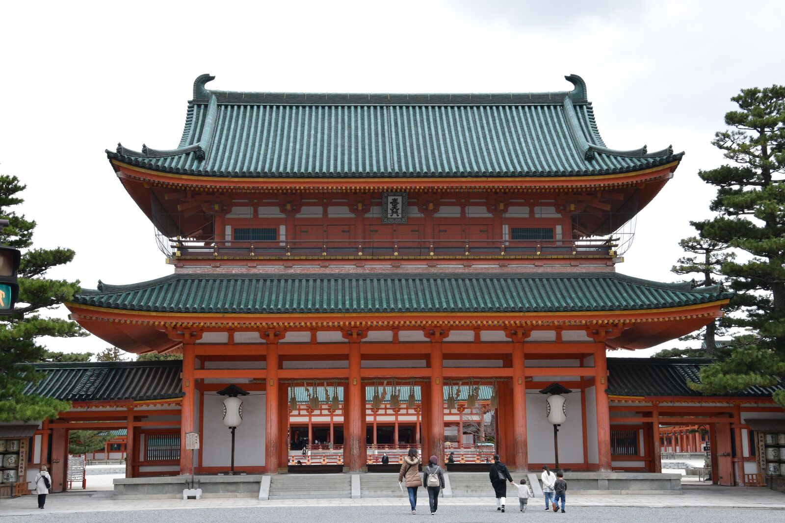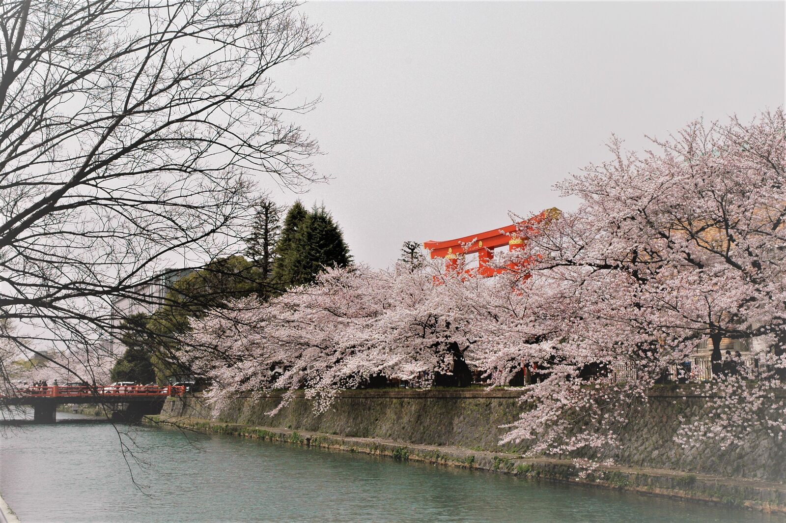 京都御苑,本満寺としだれ桜を満喫して,つぎに,円山公園に向かいました。出町柳あたりから鴨川に沿って歩き近衛通を東に行って,聖護院あたりから平安神宮を通り,そこで南に神宮道を下るのがいつものコースです。この日もまた,ほとんど人はおらず,ときおりピンクの花をつけた桜が目を引きます。