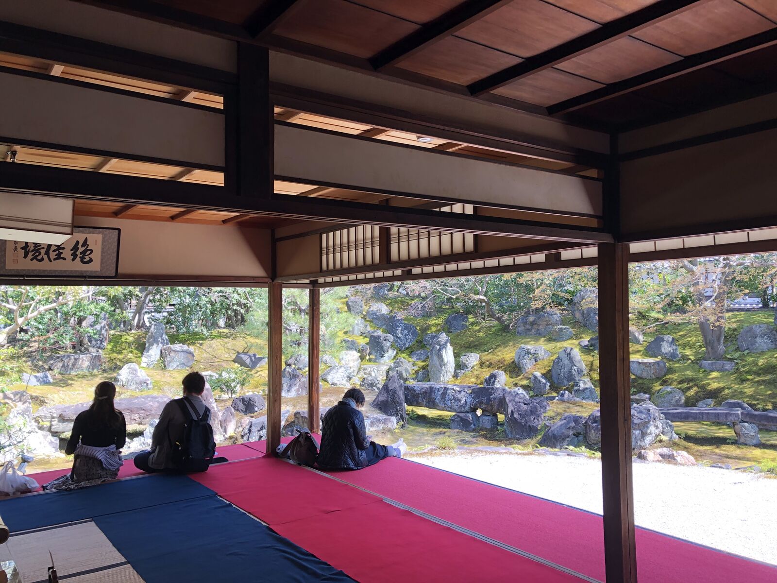 私はここが好きで,京都に行くたびに利用しています。まず,茶菓子とお茶をご馳走になれます。そのあとで,圓徳院の庭をぼーっと眺めるのは至福な大人の時間で,清水寺の参道できゃっきゃ騒いでいる若い人とは無縁の世界となります。