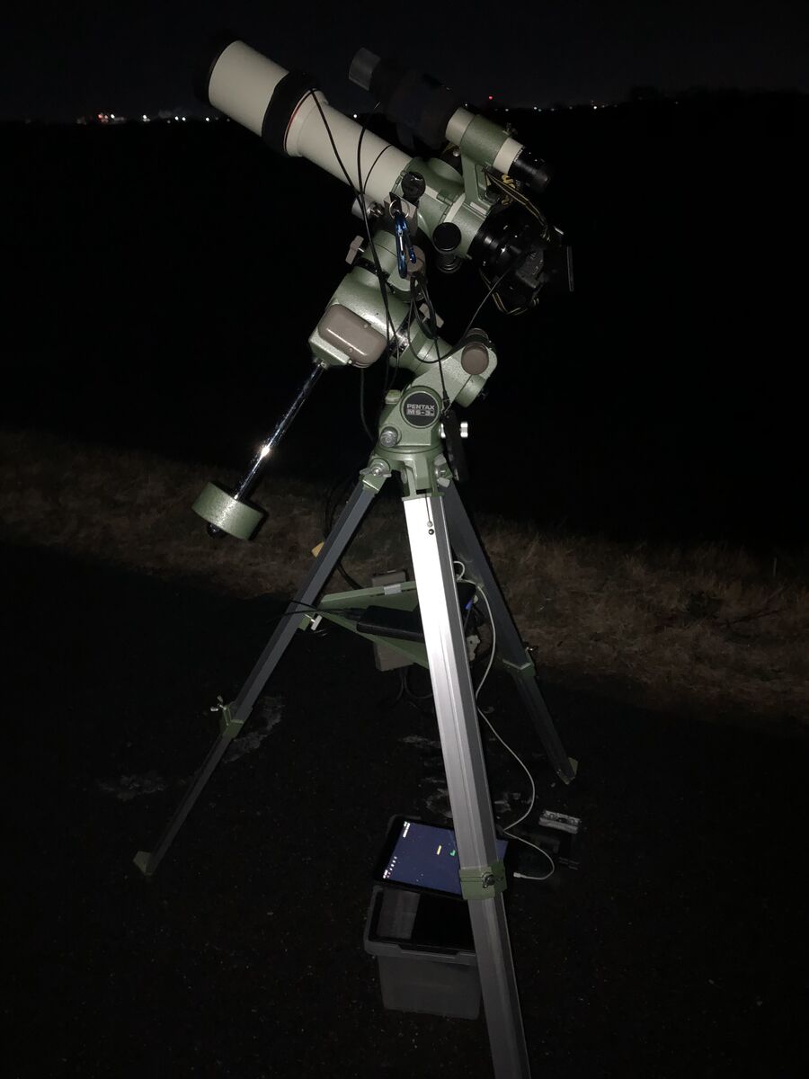 この望遠鏡の問題は電源でした。12ボルトの電源が必要というのは,屋外で使うには結構難問で,毎回重いバッテリーを持っていく必要がありました。私は改造して,モバイルバッテリーの電圧を回路で増圧してUSBで接続しこれで動くようにした(モバイルバッテリーの電圧は5ボルトなのでそのままでは使えません)ので,ものすごく便利になりました。また,アリ溝で簡単に組み立てできるようにもしましたし,パーティノフマスクで簡単に正確にピント合わせもできるし,ヒーターで常に夜露がつかないようにもしてあります。また,カメラは安価な中古ですが,天体用に改造してあります。