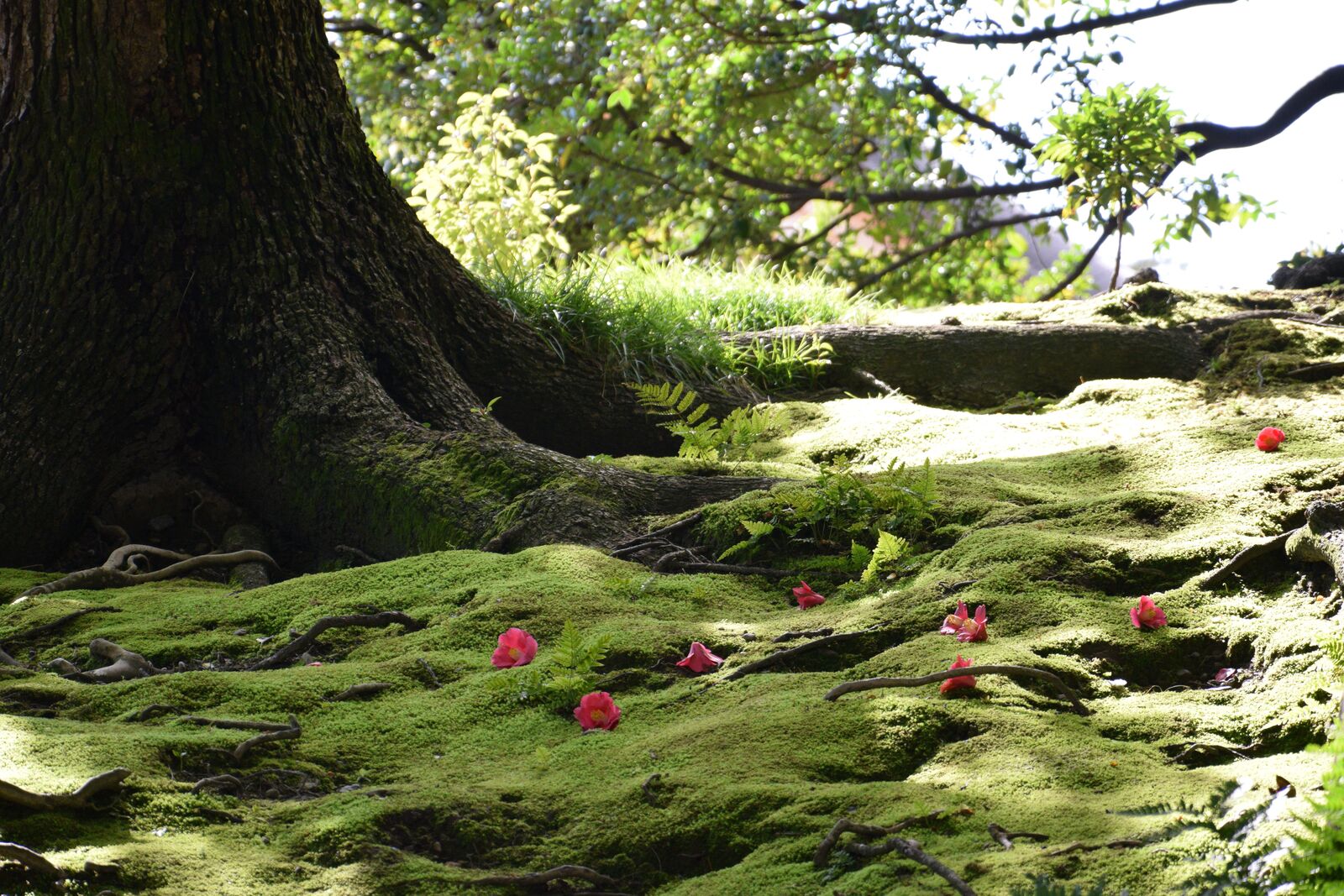 庭園は北庭とよばれ,移築後に小堀遠州が整えたもので,巨石を多く配置した珍しい造りの枯山水庭園です。眺めているととても落ち着きます。伏見城にあったときは水をたたえた池泉回遊式庭園でしたが,この地に移したとき敷地面積が縮小したことから枯池泉座視式に改められました。東の築山から枯滝を枯池に落とし枯池に2島を配置してこれを3本の石橋で結ぶといった,桃山時代の典型的な枯山水の書院庭園の趣をもったもので,全体に巨岩を多数配置した珍しい庭園としても知られます。そう,この庭のみどころは,桃山時代の豪華さ・豪胆さを思い起こさせる巨岩なのです。