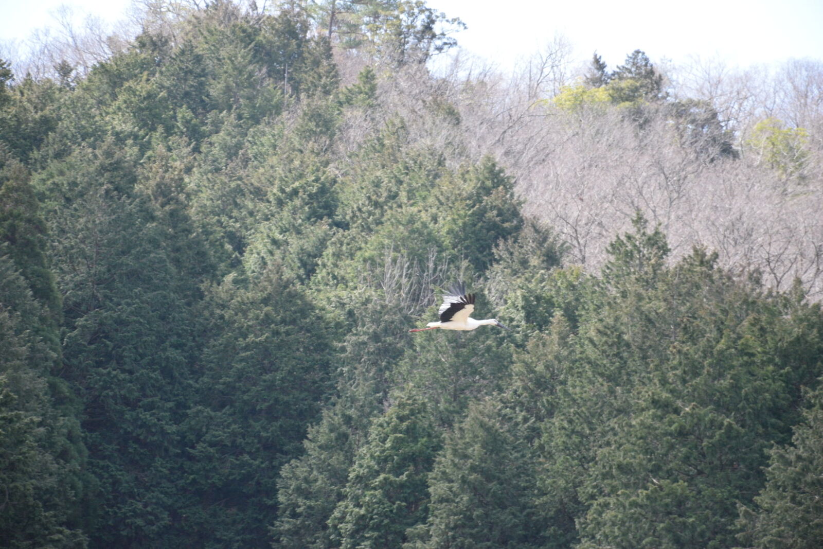 豊岡には「兵庫県立コウノトリの郷公園」というのがあるそうなので,ともかくも行ってみることにしました。しかし,駐車場に車を停めて入口まで行ったのですが,このご時勢で,「兵庫県立コウノトリの郷公園」は閉園していました。ちょうど来ていた幼稚園の園児たちががっかりして集まっていました。しかし,公園のまわりにひろがる田園にコウノトリが何羽もエサをつついているのが遠くから見えました。するとそのうち,数羽のコウノトリが羽を広げて飛び立ちました。いつも見ることができるのかどうかは知りませんが,こうして,私は,幸運にもにコウノトリが飛ぶのを見ることができたのです。