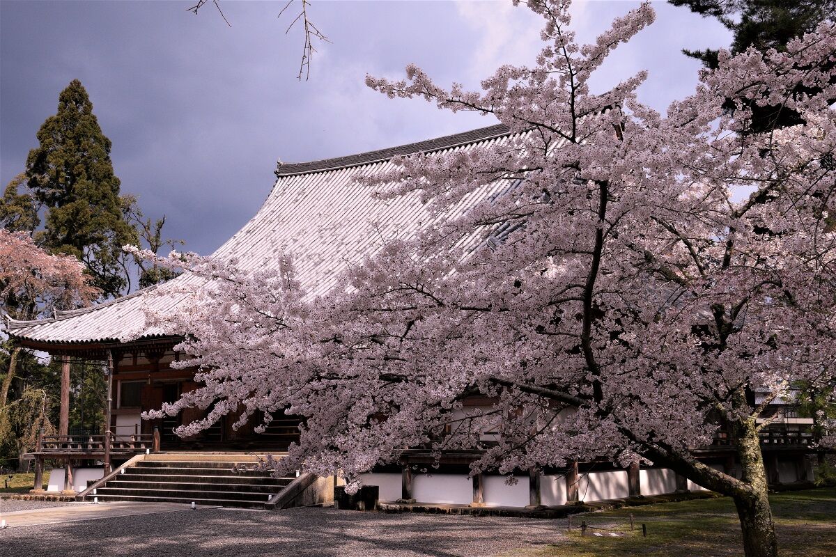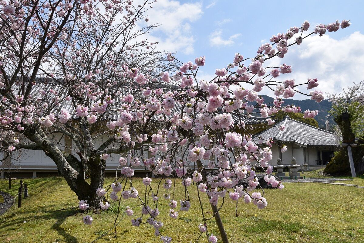 三宝院には,太閤しだれ桜と三宝院庭園の紅枝垂れ桜があります。霊宝館には,醍醐深雪桜や白山大手毬という八重桜があります。また,伽藍の金堂横には薬師大枝垂れ桜があります。
