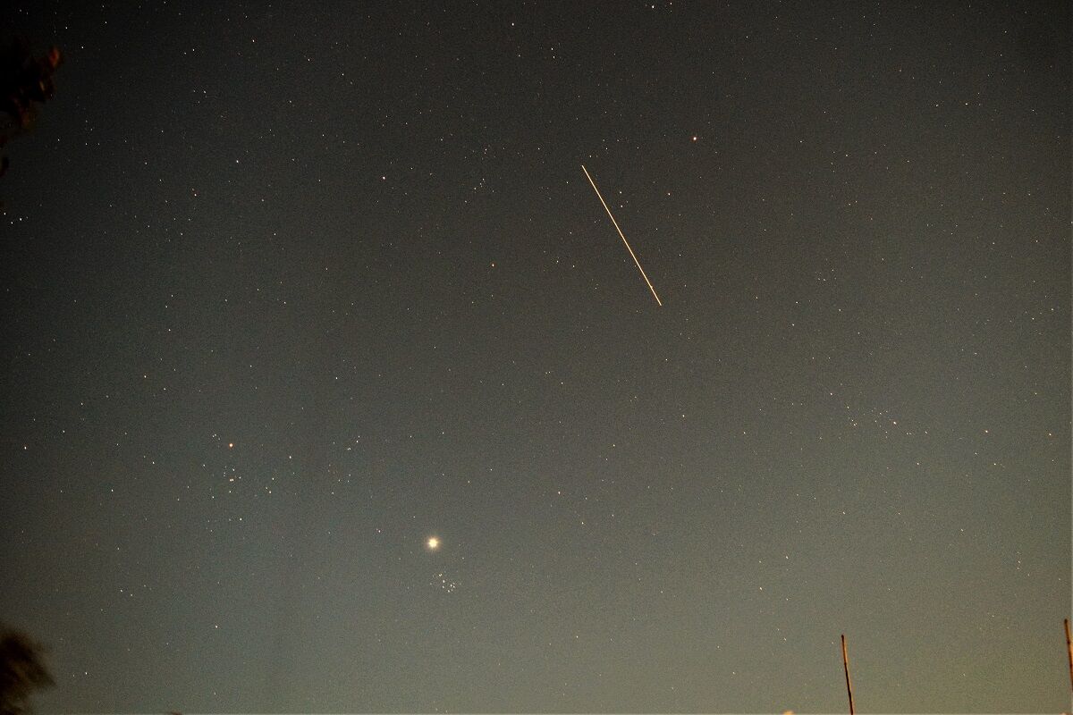 4月6日の午後6時38分,ISS(国際宇宙ステーション)がプレアデスに接近中の金星の上空を飛んでいました。とても明るくきれいでした。