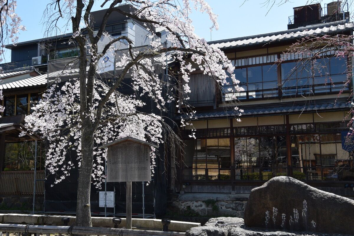 白川沿いの石畳の道は,かつてはお茶屋が立ち並んでいた場所でしたが,そのなかで有名だったのは,祇園白川に「大友」あり「大友」に「お多佳さん」ありというぐらい有名なお茶屋「大友」でした。「大友」には夏目漱石や谷崎潤一郎などの有名作家や画家が多く訪れました。