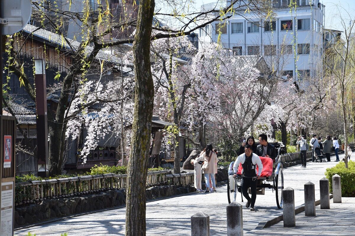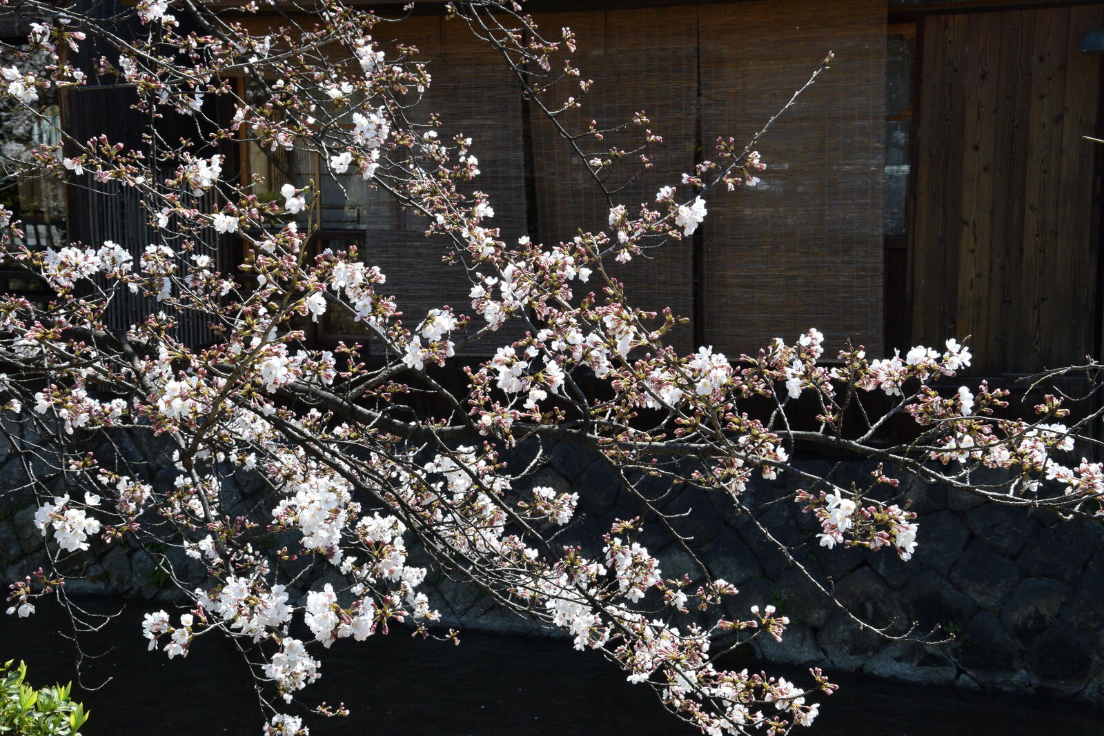 祇園白川の桜はソメイヨシノなので,しだれ桜よりは開花が遅くまだ7分咲きといったところでした。ここは雰囲気のよいところですが,祇園にしては訪れる人が少ないところです。おそらく,場所がわかりにくいからでしょう。