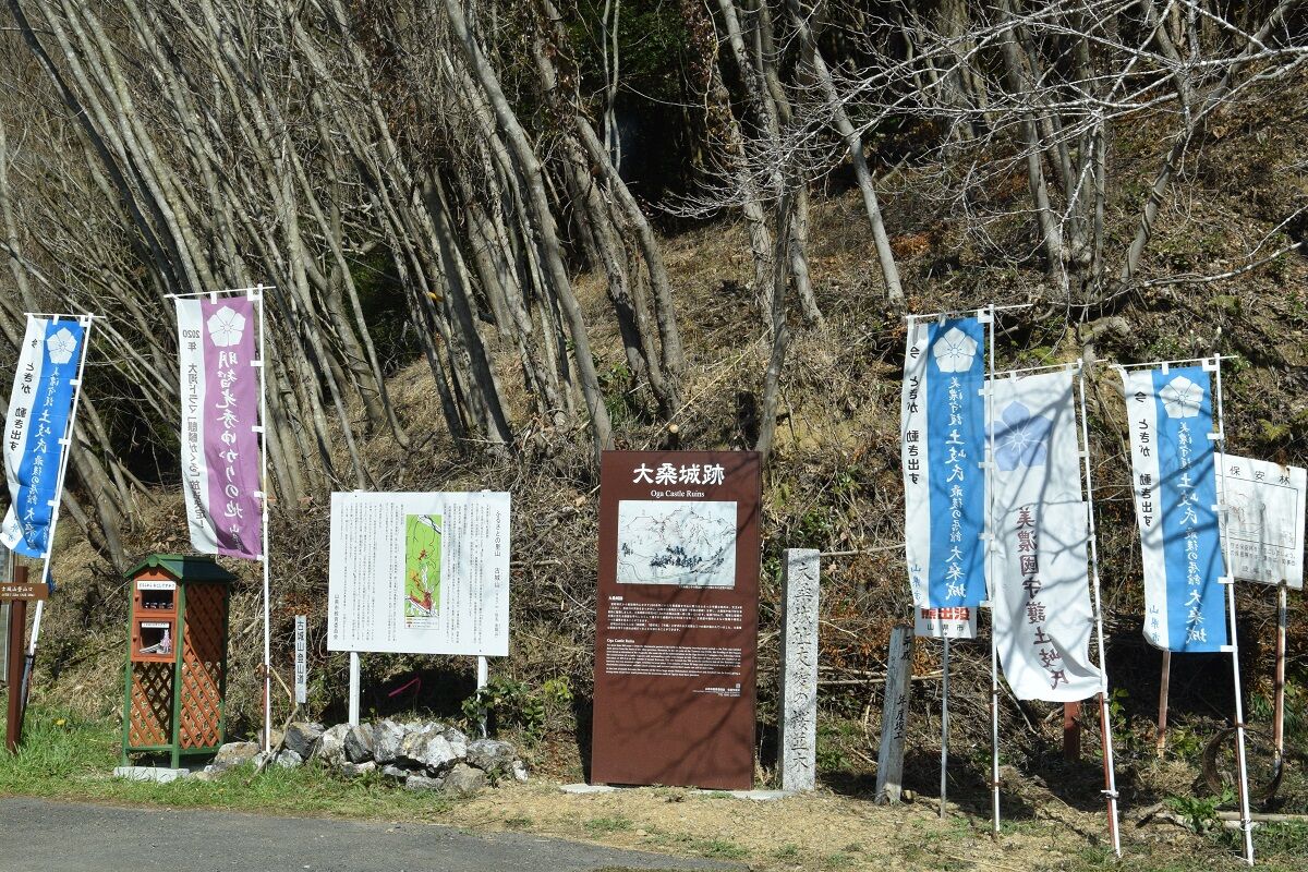 ところが,3月のはじめに余部鉄橋を見にいった帰りに,行く予定もなかった黒井城に行き,駐車場から予想以上に遠かった本丸跡まで登ってしまい,私にとっては険しくて死ぬ思い(オーバーな)をしました。このことはすでにブログに書きましたが,もう,こんなことは二度とするまいと決意を新たにしました。しかし,なぜか,それから1週間とたたない3月12日,今度は,昨日放送された「麒麟がくる」で名前が出てきた大桑城(おおがじょう)に登城というか登頂することになってしまいました。