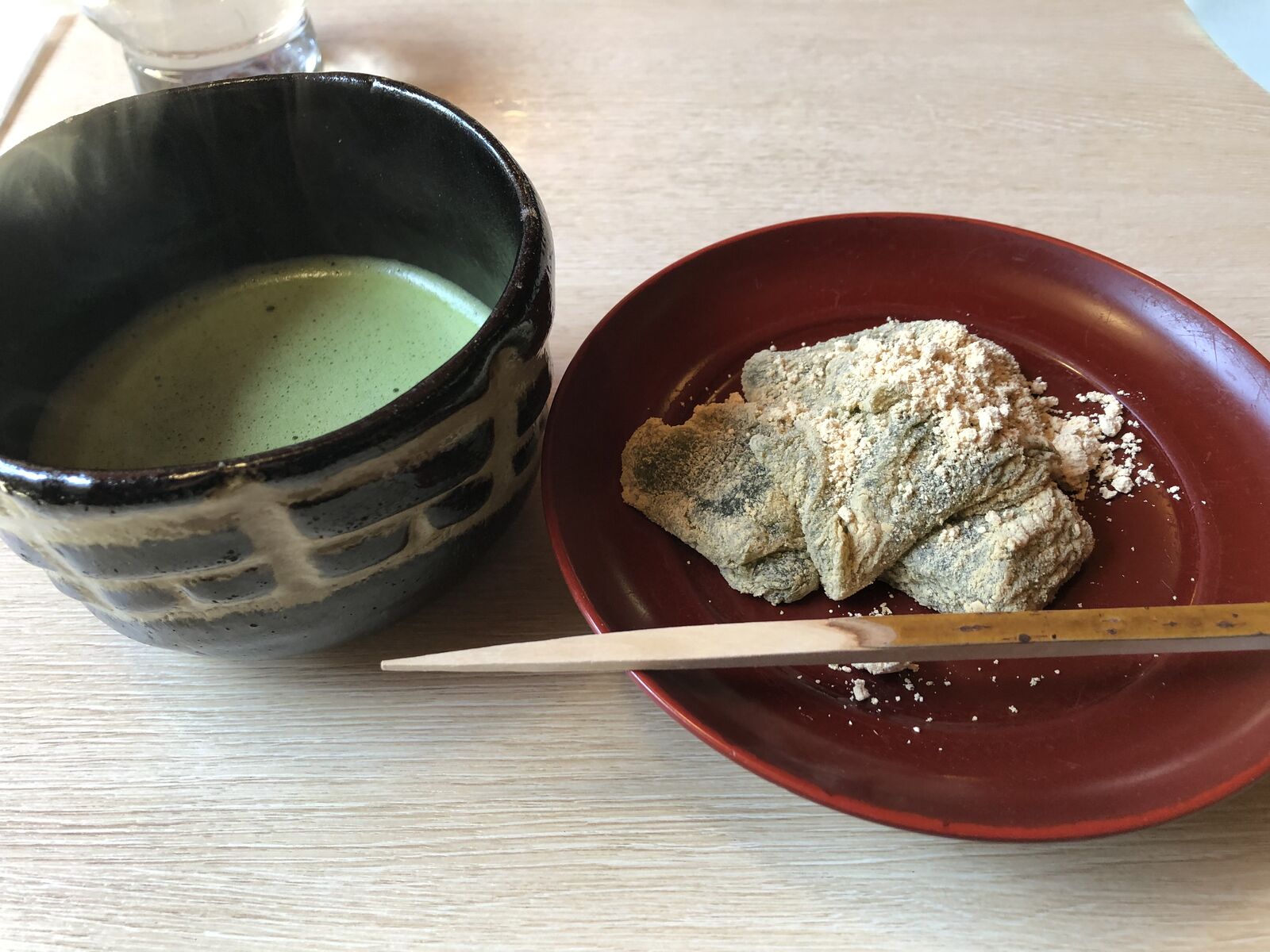 清水寺を早々に引き上げ来た道を引き返して,二年坂に来ると,突然人がほとんどいなくなり,静寂の「ねねの道」に戻ったときはホッとしました。ここらあたりで昼食をとることにしました。なるべく人のいない,そして落ち着くお店をということで探し出したのが「波ぎ茶寮」というおそば屋さんでした。食事を終えて,せっかく来たのだから今度は甘味をということで,抹茶とわらび餅が食べられる,これもまた落ち着いた「洛匠」というお店に入りました。ここは有名なお店なので並ばずに入れるのもまた,今だからのことでした。