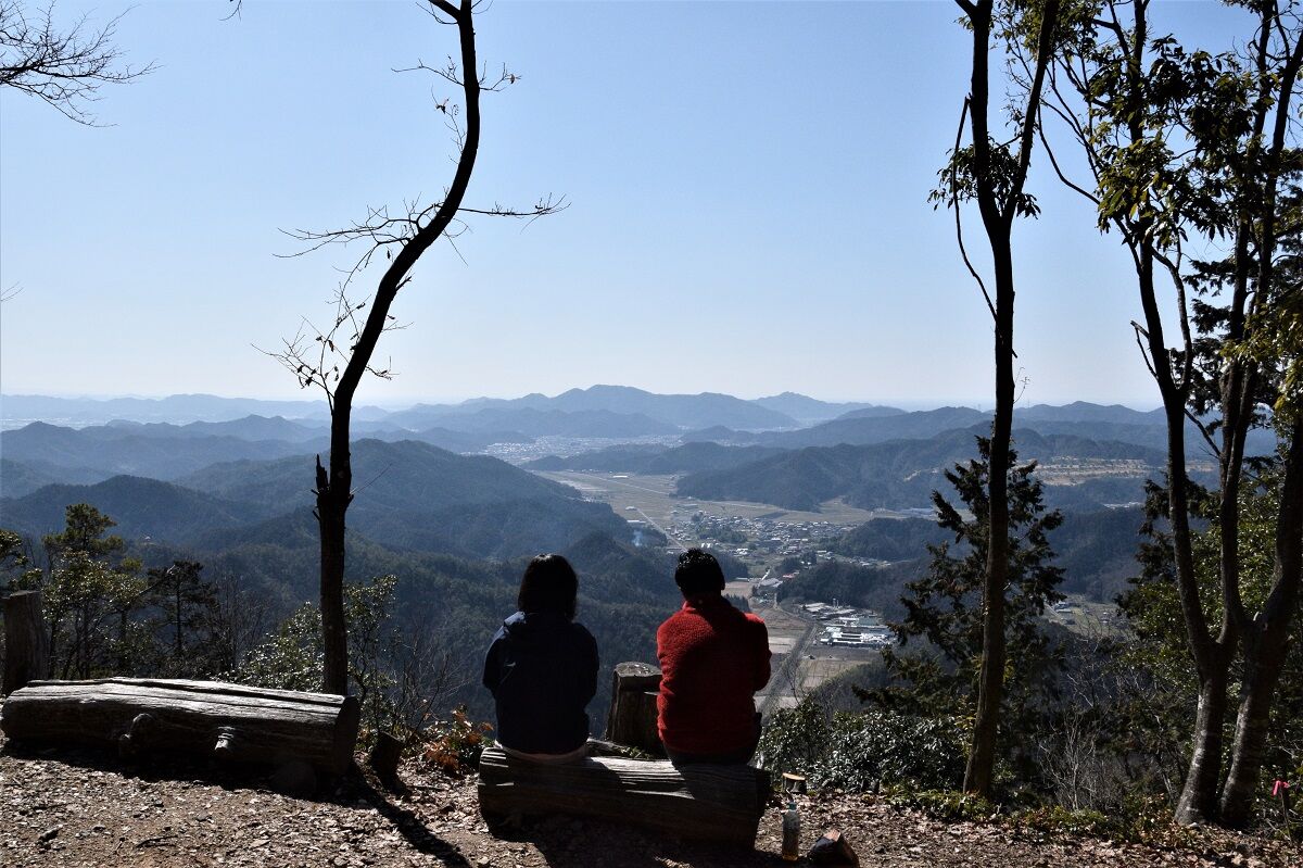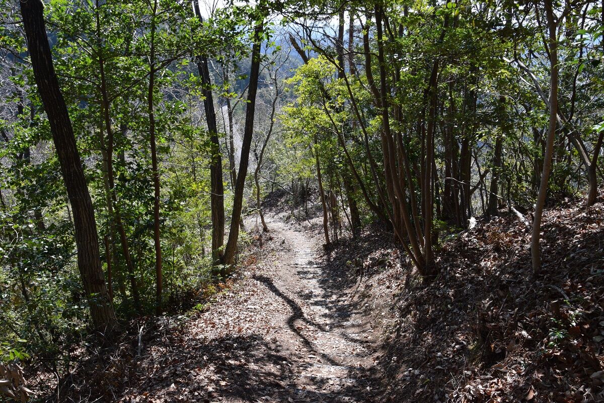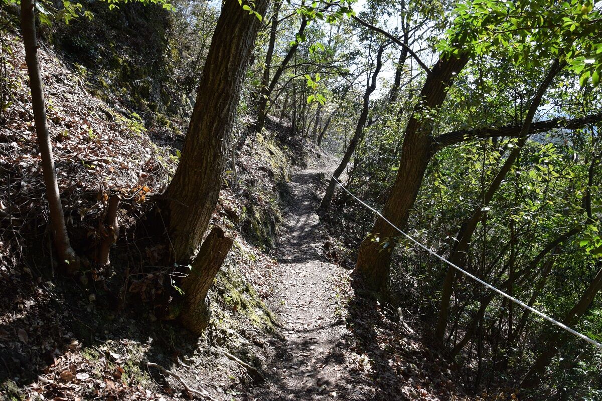 登山道は「麒麟がくる」の観光客目当てらしく急ごしらえで整備されていて,真新しい白いロープがずっと枝に張ってありました。ロープをささえにすれば登るのに苦労はありませんでしたが,山頂まではずっと急坂が続いていて,黒井城に登ったときとまさに同じように,大変な思いをしました。