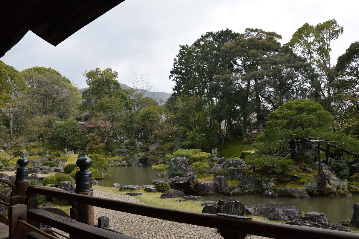 青龍殿の外側には清水の舞台の約5倍もある大舞台が作られて,そこから京都市内が一望できるようになっていました。また,境内には中根金作氏作庭の枯山水式庭園があって,そこのしだれ桜が満開でした。