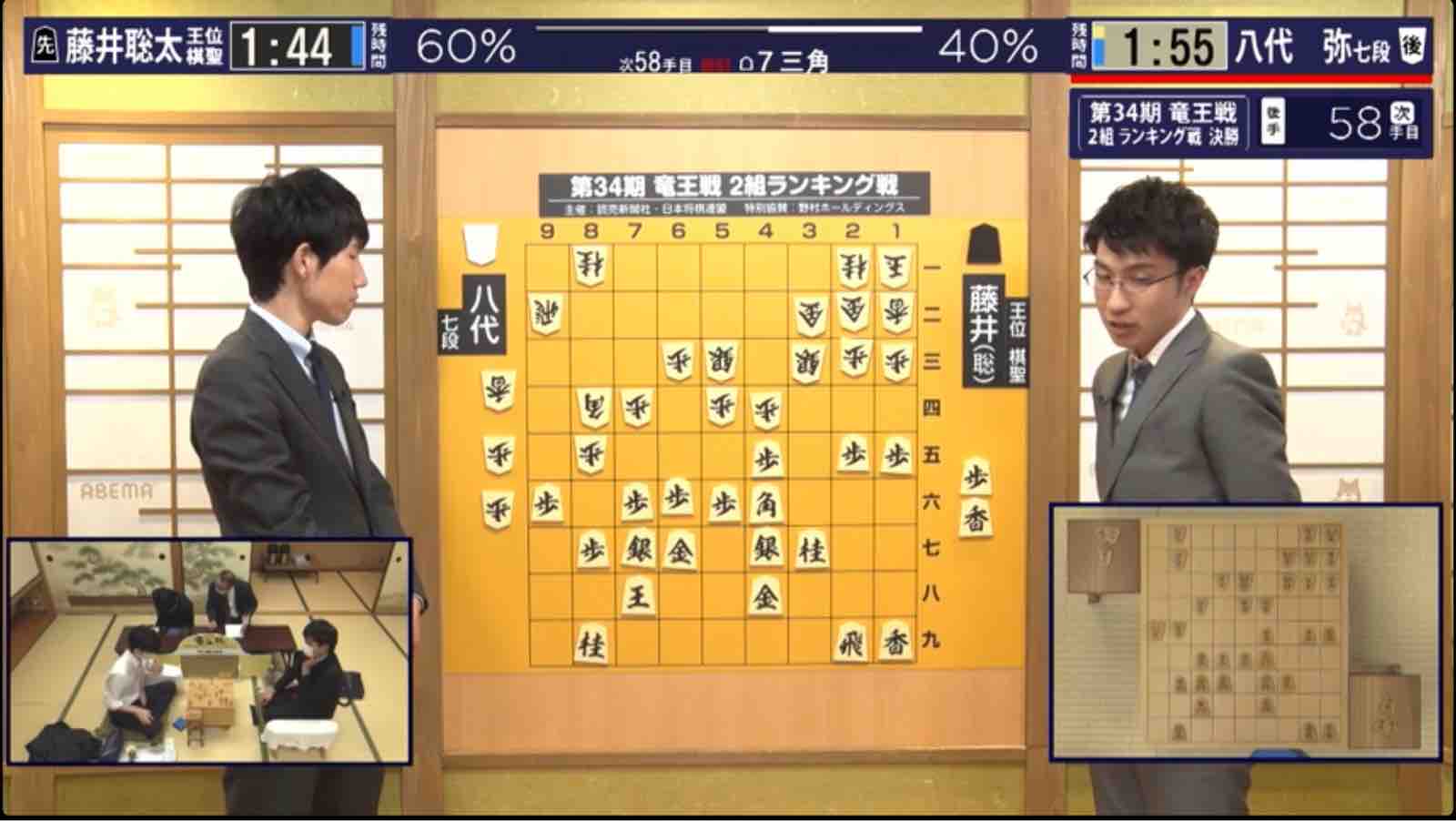ニコニコ生放送では,この表示を評価値といっていましたが,ABEMAでの表示をどうよぶかということは多分定まっていなくて,解説をしている棋士も,勝率とか,以前のように評価値とかさまざまにいっています。私は,よび慣れているので,ここでは評価値ということにします。