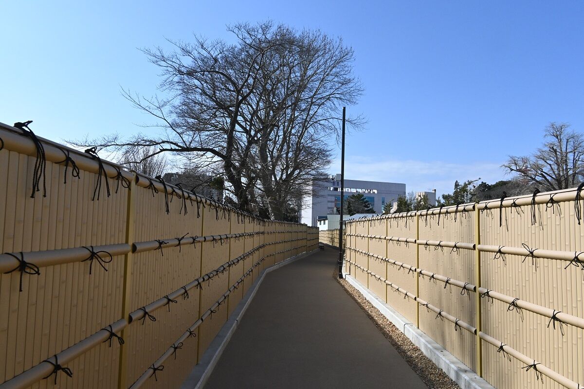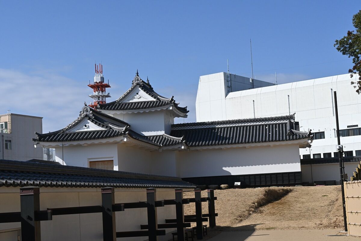 角櫓は高さ9.6メートルで,角櫓から大手門に延びる全長約470メートルの土塀とともに,2018年3月に着工し,昨年9月に完成した。 昨年2月には正門に当たる大手門が完成しており,角櫓の完成で水戸城における一連の復元プロジェクトは完了した。