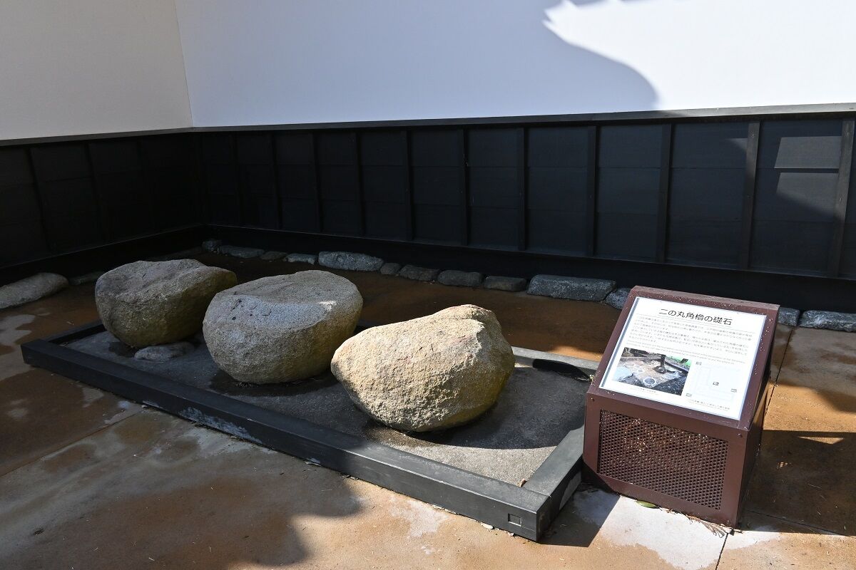 櫓の前には発掘された当時の礎石が展示されていました。中に入ると,水戸城に関する展示があって,水戸城について何も知らなかった私は,興味深く見ることができました。