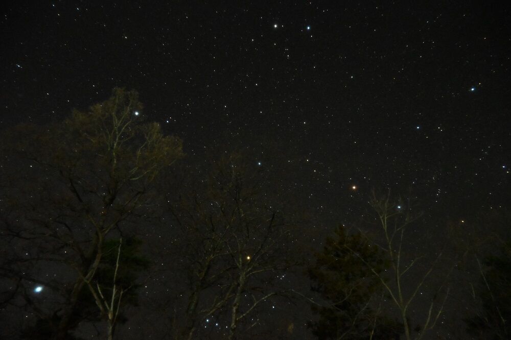 夜,お風呂から戻るとき,空に満天の星が見えました。私は,星を見に来たわけではなかったのですが,三脚は持ってきたので,星の写真を撮りました。この時期の天の川は薄くしか見えません。