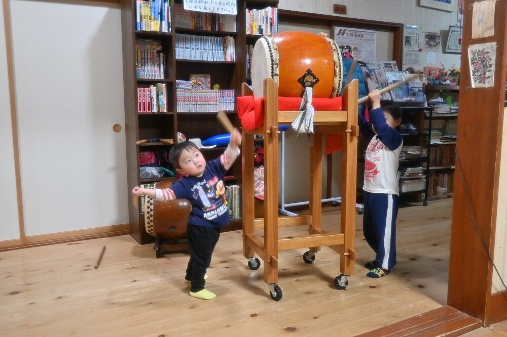 この家には5歳と2歳のかわいい男の子がいて,食事の前に,歓迎太鼓を披露してくれました。それがまあ上手だったこと。生まれたときからそれを聞いて育って,体が覚えているようでした。その後,地酒「金鶴純米活性にごり酒」を冷で2杯飲んで,おいしい食事をいただきました。普段お酒を飲まない私ですが,この地酒は気に入りました。