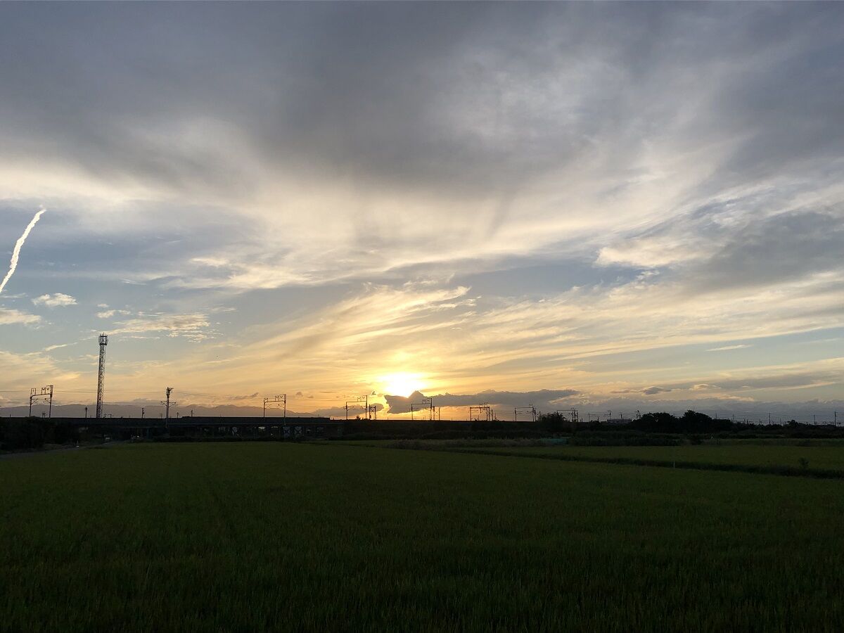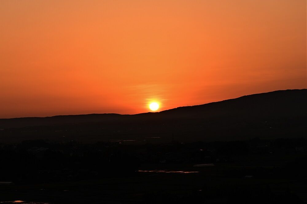 トキがねぐらに帰るのが日が沈むころだとトキの森公園で聞いていたので,もう一度トキのテラスへ行って,運がよければトキが見れらるかも,と思ったからです。しかし,トキのテラスで30分以上を眺めていても,鳥1羽飛んできませんでした。どうやらトキのテラスは飛んでいるトキを見るにはあまり条件のよくない場所だったようです。ただし,美しい夕日を見ることができました。