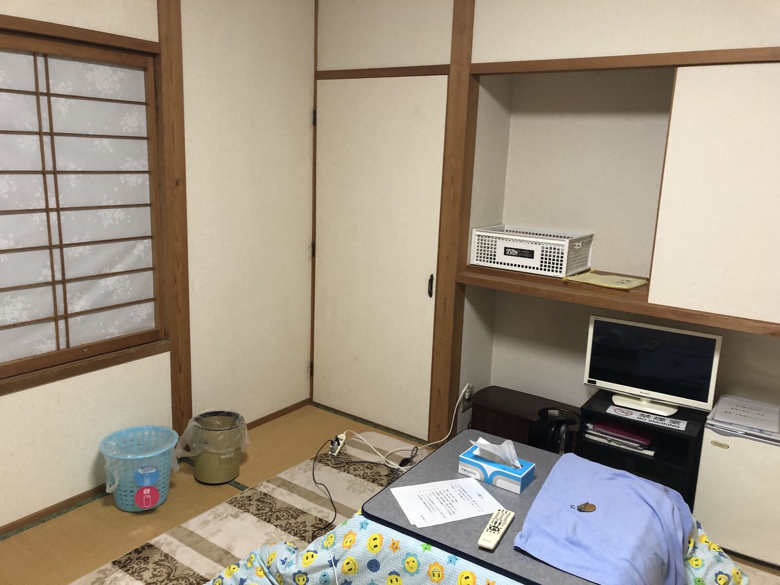 大きな民家で,離れに宿泊棟があって,1階に2部屋,2階にも2部屋ありました。私が宿泊した1階の6畳和室の部屋にはバストイレがついていましたが,風呂は,別棟の大きなものを利用しました。食事は母屋で食べます。思った通り,オフシーズンで,宿泊は私だけでした。