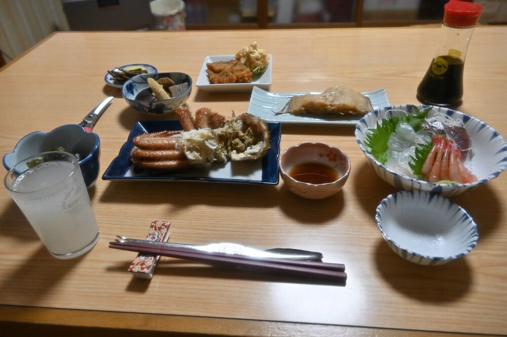 あきらめて民宿に帰って,いよいよ夕食です。