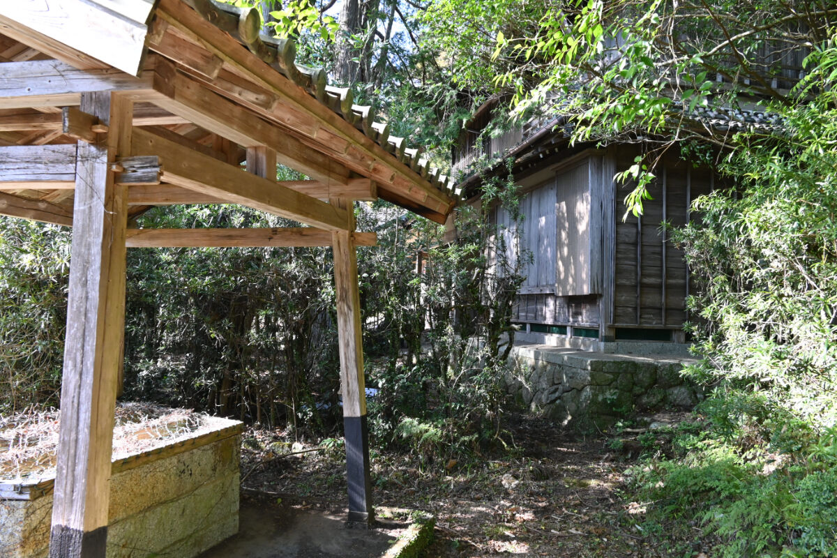 約635年前,この地に住む喜助が病気で難儀していました。朝日保方(あさひやすかた)という白髪の老人が鶴の舞い降りた泉の水で喜助を介抱し,喜助はもとのからだに戻りました。喜助は疫病から救ってくれた恩人として,朝日保方を霊泉の傍らに手あつく葬り,祠をたてて朝日神社とし,霊泉の泉を鶴ケ清水と名付けたということです。この祠は今も御薬園にあります。