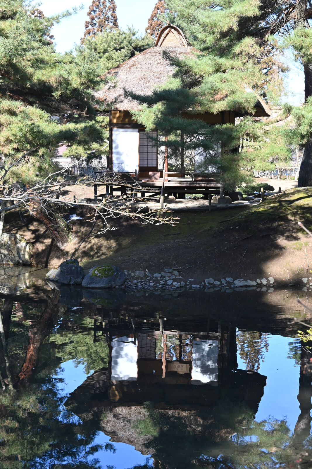 池泉式回遊庭園の池の水源は,猪苗代湖と東山の湯川の2系統から引き入れているということです。