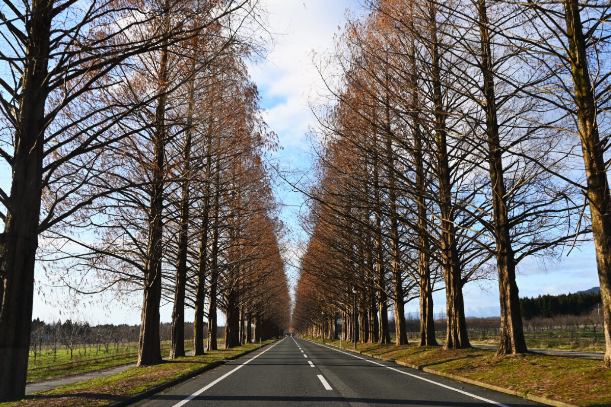 食堂にポスターが貼ってありました。それは,メタセコイアの並木道でした。そういえば,このあたりにそんなところがあるということだけは,いつか聞いたことがありましたが,すっかり忘れていました。せっかく来たのだから行ってみようと,正確な場所を GoogleMaps で検索して,民宿をチェックアウトしたのち,車を走らせました。