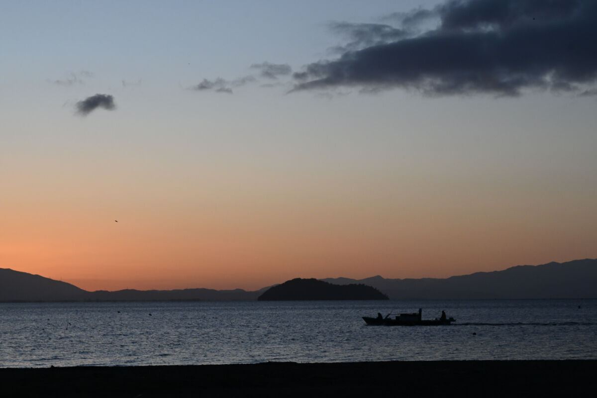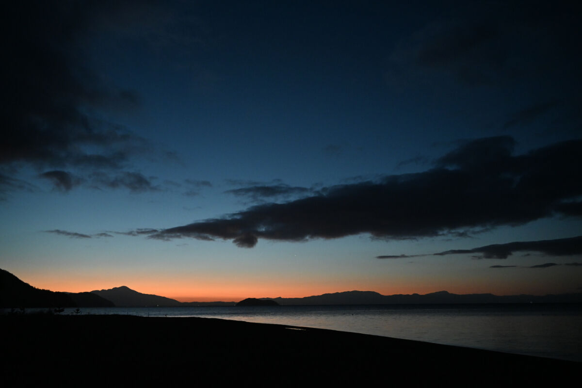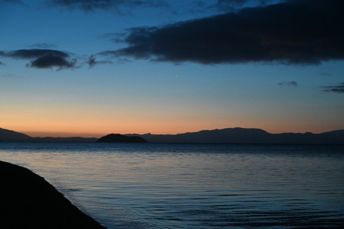 今回1泊した民宿は,琵琶湖畔にあり,オートキャンプ場と接していました。私は異常なほどの早起きなので,今回も,夜明け前に起床しました。朝食まで時間があったので,海岸を散歩することにしました。