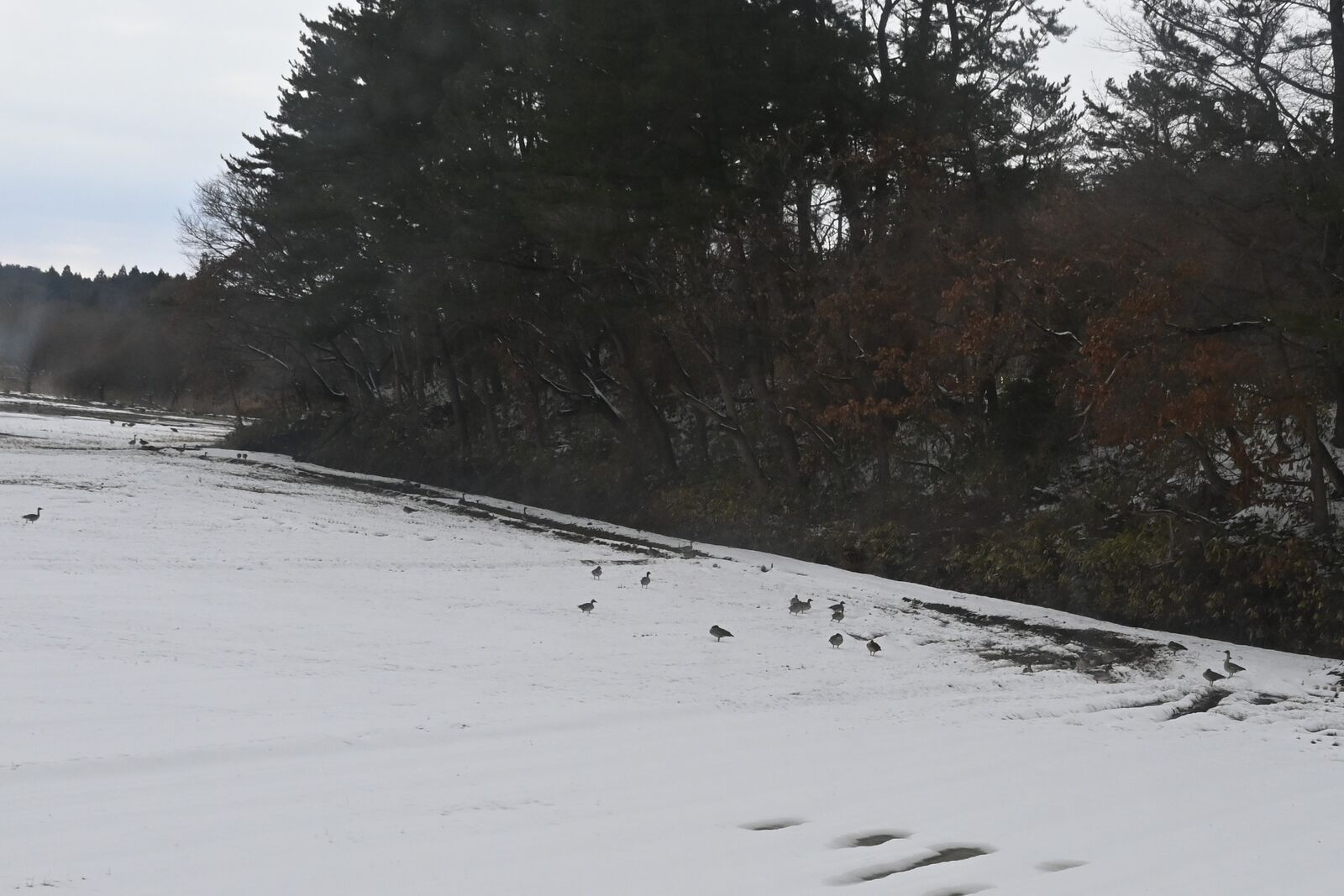 シーズンオフのキャンプ場に,ただ1組の年配の夫婦が,この寒さの中でキャンプをしていました。