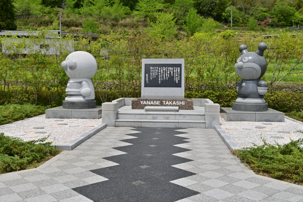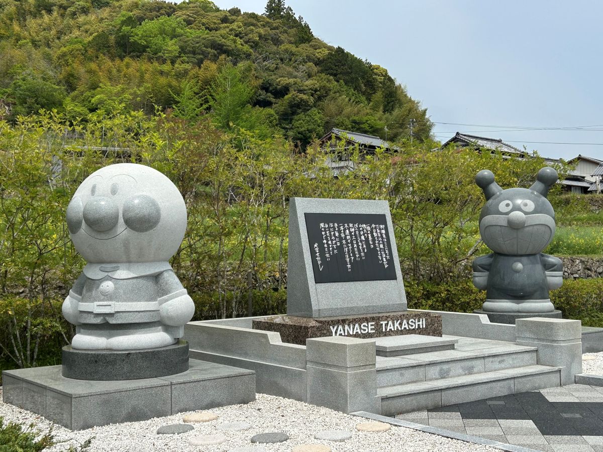 After visiting the Anpanman Museum and related facilities, I had lunch at the Birafo roadside station. I then went to Yanase Takashi Honoki Park, where Yanase Takashi and his wife rest under a stone monument. Nearby, I visited Koshoji Temple, the Yanase family’s ancestral temple. The area was filled with nostalgic countryside scenery, including rice fields, old warehouses, and roadside Jizo statues.