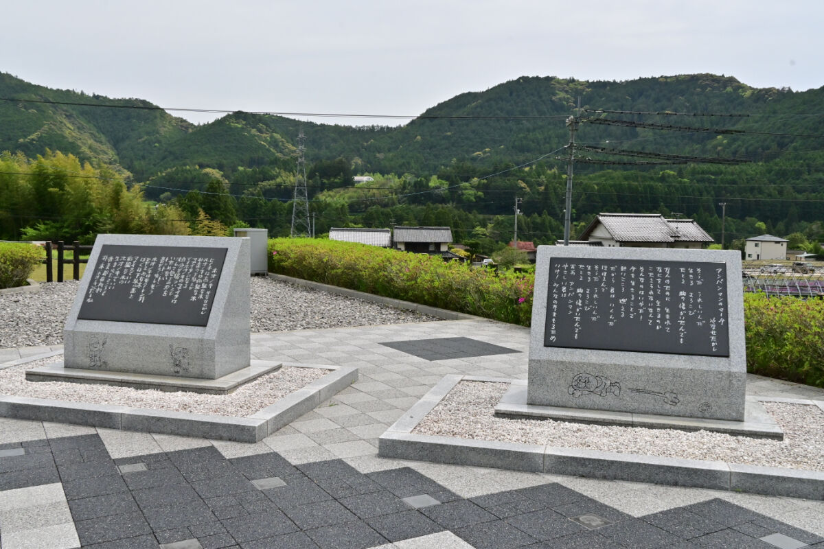 やなせたかしさんの墓地公園で,やなせたかしさんの実家跡地に整備されました。妻の暢さんと共に,やなせたかしさん直筆の詩碑の下に遺骨が納められています。