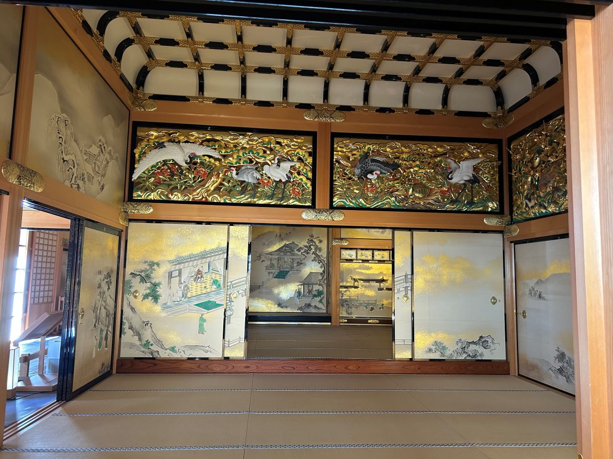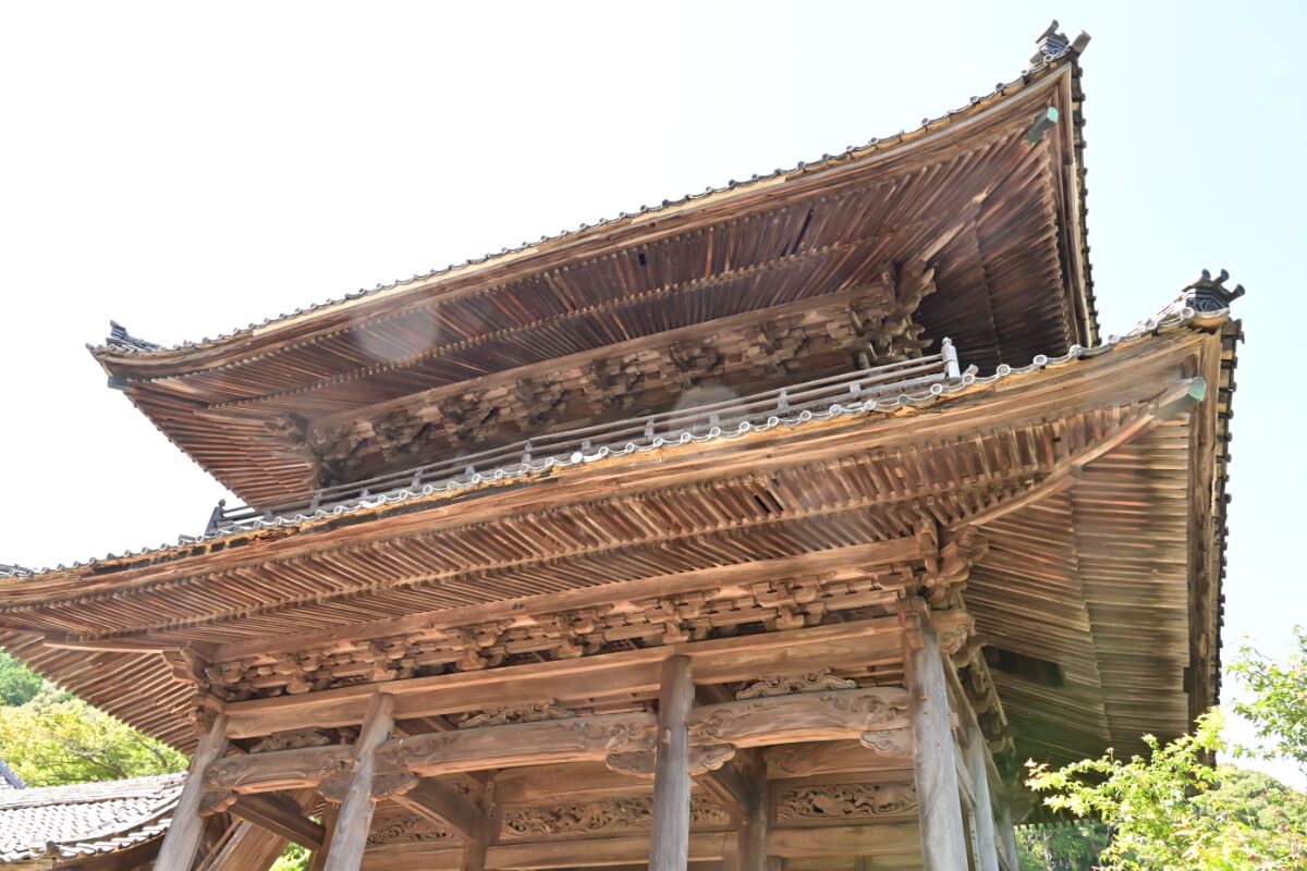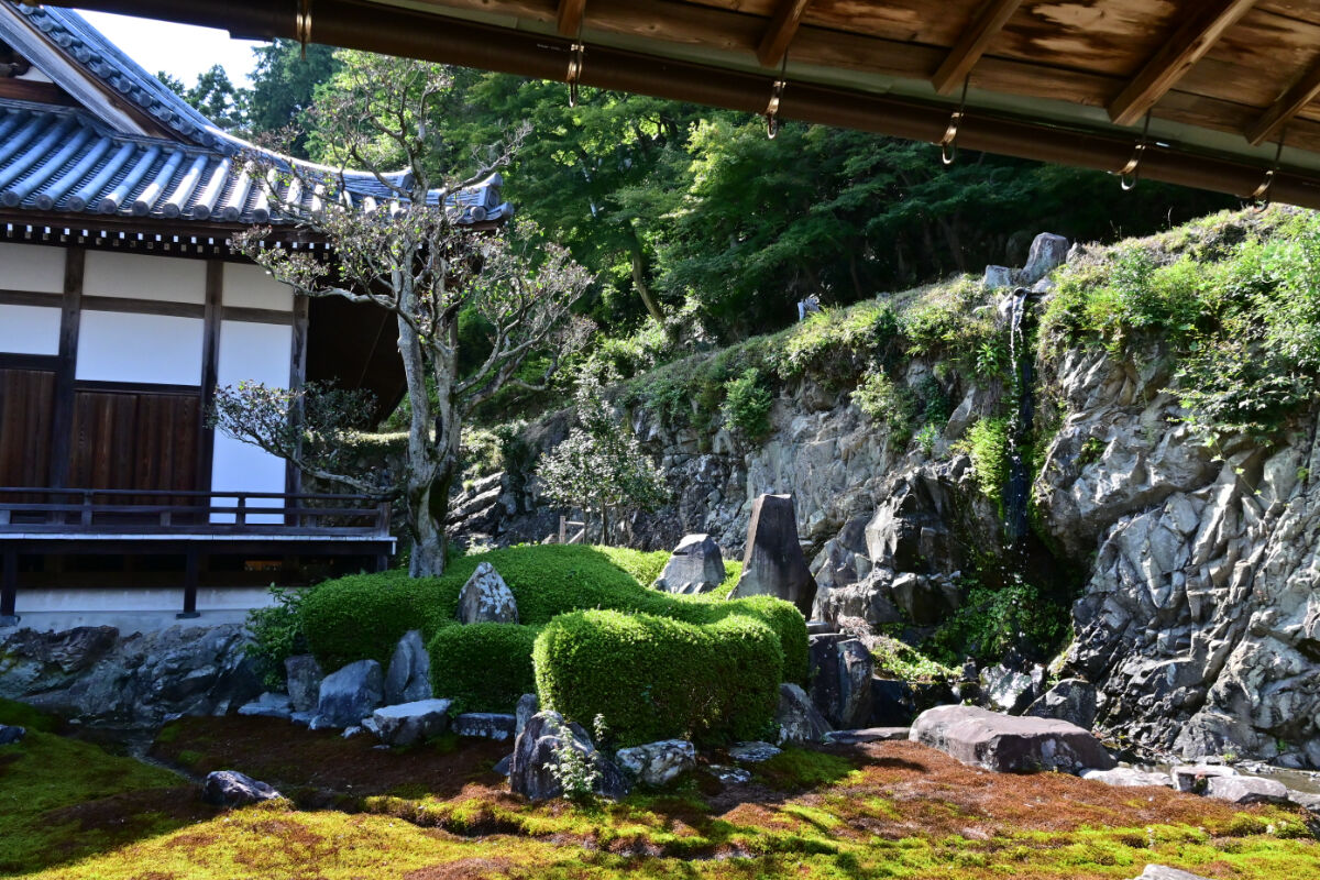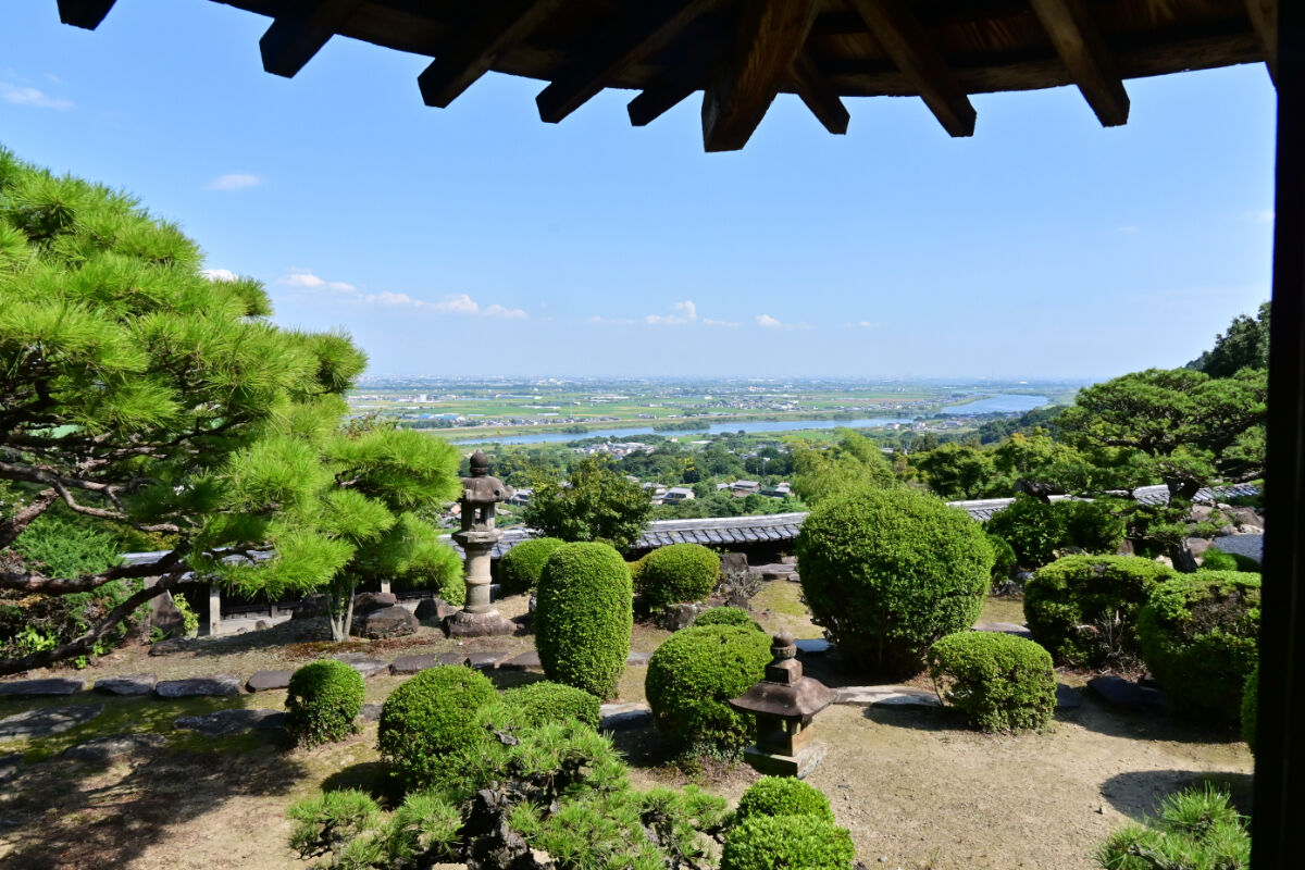 Gyoki-ji, a Jodo sect temple founded on a site linked to the monk Gyoki, later became the family temple of the Takasu clan. Built on a mountainside, its fortress-like stone walls and halls once served as a hidden stronghold. From the main hall and study rooms, visitors can overlook the Nōbi Plain, while the “Moon-Viewing Room” and the elegant strolling garden offer seasonal beauty, making the temple famous for autumn foliage and moonlit views.