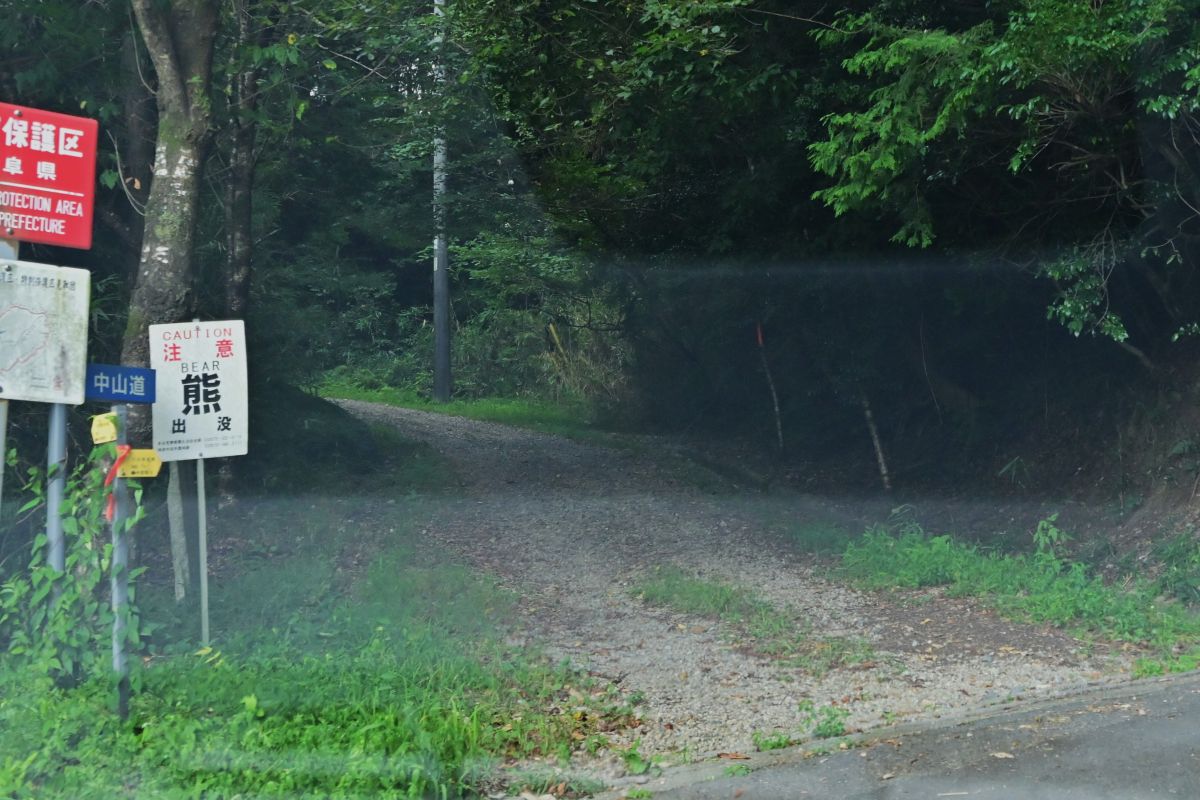 確かに,細い急な山道でした。その麓に駐車場があって,そこに停めて,歩くこともできるようでした。よほど,そうしようと思いました。しかし,そんな山道,私は歩いて登る気にはなりませんでした。実際は,登っている人をひとり,帰りがけに目撃しました。意を決して車で登ることにしました。確かに細い山道でしたが,未舗装というのはわずか数メートルのことで,そのほとんどは舗装されていました。