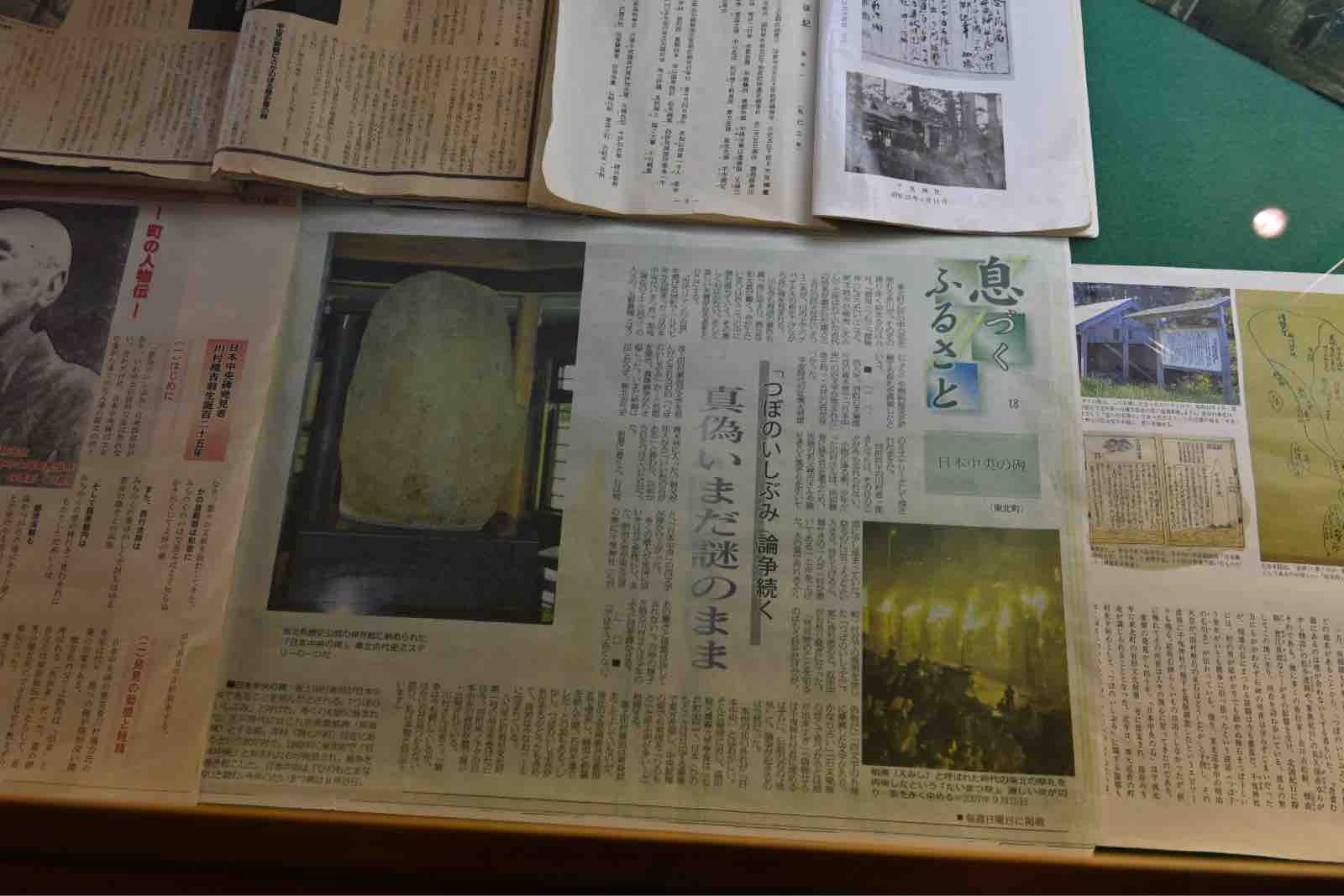 日本古代史の中でも屈指の謎をもつ「日本中央の碑」。歌学者の藤原顕昭が出した「袖中抄」に〈陸奥には「つぼのいしぶみ」という石碑があり,蝦夷征討の際に坂上田村麻呂が矢筈を使って「日本中央」という文字を刻んだものである〉という一説があって,それ以降,東北の歌枕として和歌の中に使われ,また幻の遺跡として考えられてきたのです。かつては宮城県の多賀城の碑が「つぼのいしぶみ」と目されていたのですが,1949年(昭和24年)に青森県東北町石文という所から突如として「日本中央」と刻まれた石碑が出土したのです。