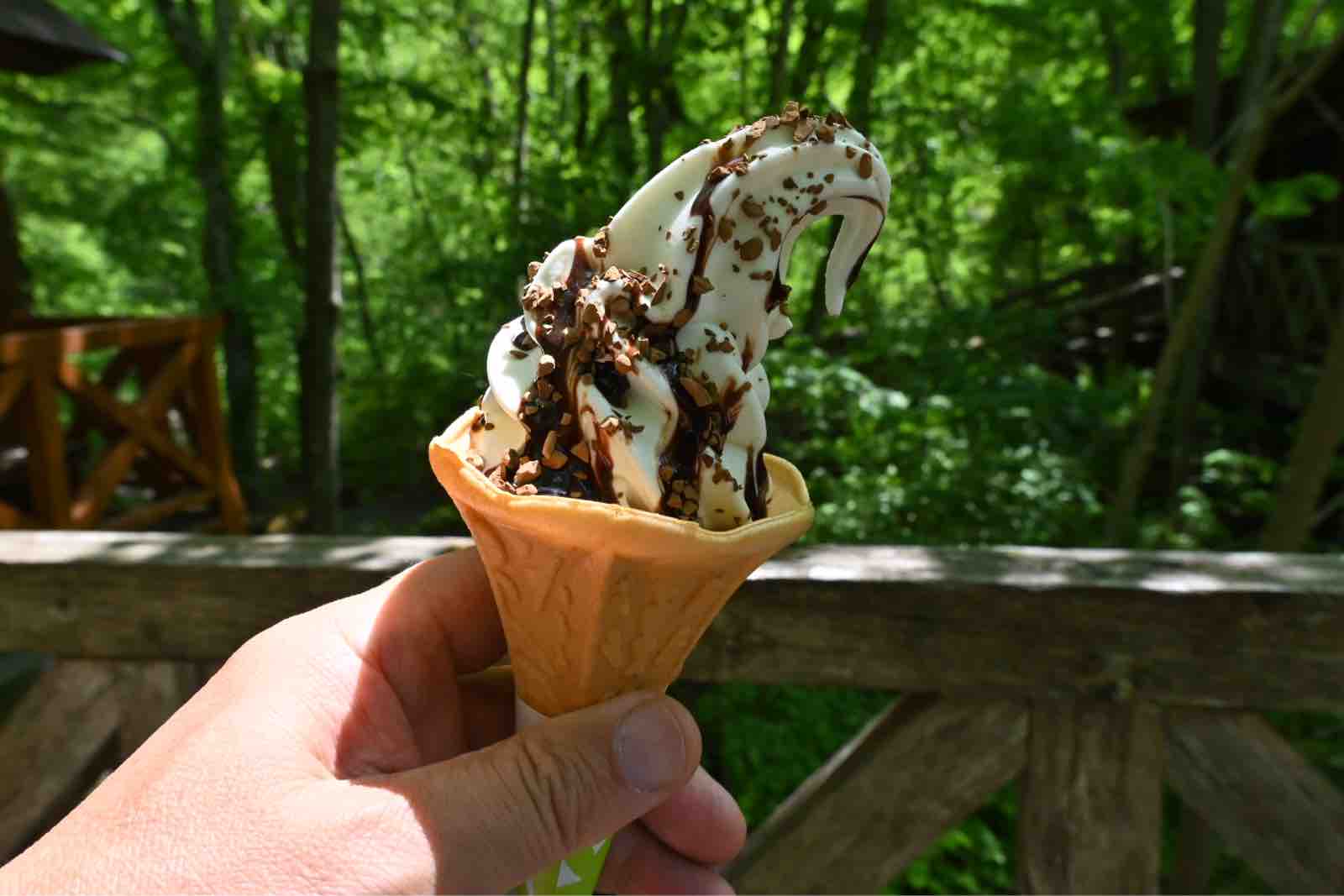 ここに広い駐車場があって,まず,売店でこの店限定のソフトクリームを食べて,そのあと,周りを散策しました。