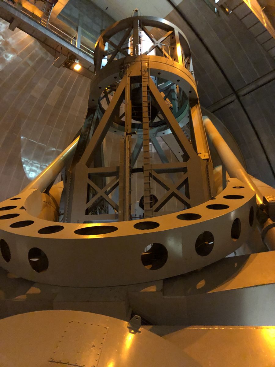 ドームはものすごく巨大で,外観もピカピカ,今も現役の口径500センチメートル反射望遠鏡はしっかりと整備されていて,ドーム内もきちんと整理整頓がされていました。