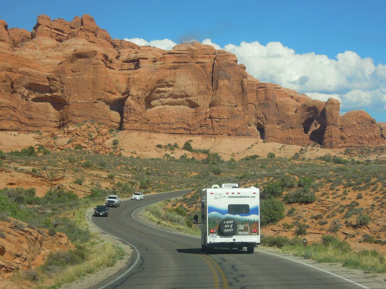 アーチーズ国立公園はその外周を車で巡ることができますが,ところどころに車を停めてトレイルをかなりの距離歩く必要があります。歩かないと,アーチの近くまで近づけないからです。