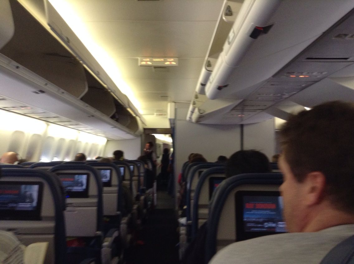 たった9時間,やはり,デトロイトまでの12時間に比べると,西海岸までは楽です。あの残りの3時間が苦痛なのです。機内では映画「清須会議」を騒音で聞こえない日本語を無視して,英語字幕で楽しみました。