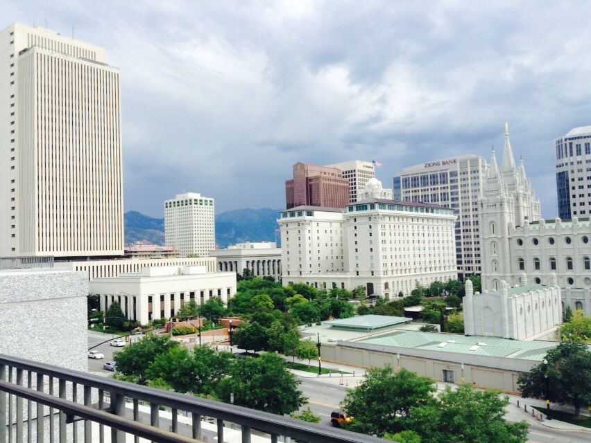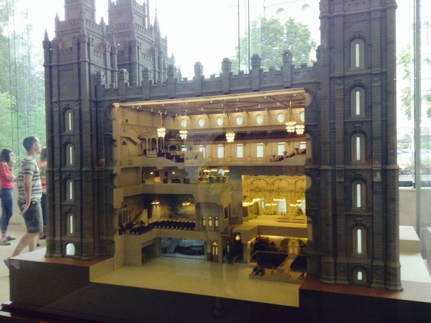 そのあと,インターステイツ15に乗って南下,出発から7時間,およそ500マイル走って,ソルトレイクシティに着きました。ここはモルモン教の聖地,ビジターセンターで,日本語の経典をもらっちゃいました。日本にもいるような宣教師さんがいっぱいいました。商工会議所ビルの屋上にガイドツアーに参加すると登ることができて,遠くには,オリンピック冬季大会が行われた山々が美しく見えました。