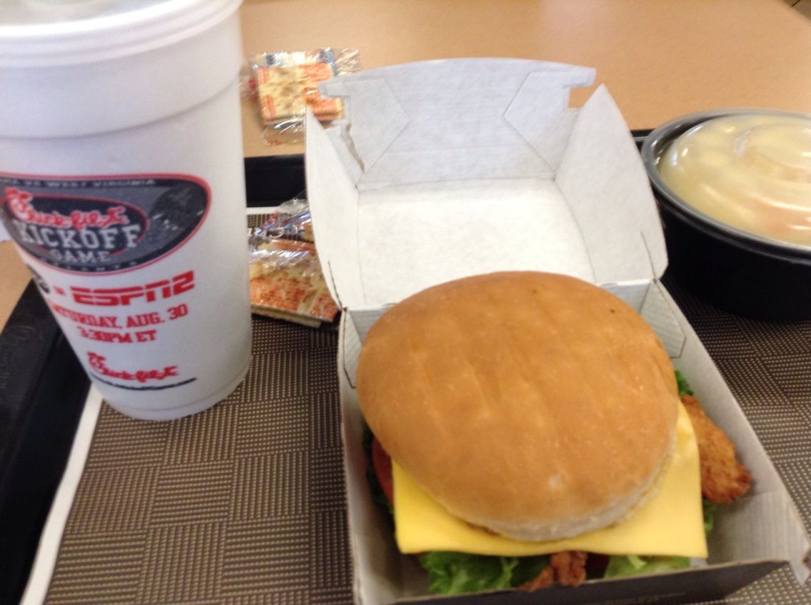 空港まで送ってもらう途中で,Chick-fil Aというファーストフード店に行きました。ここ,オススメです。日本にないのが不思議です。マクドナルドやKFCなんて目じゃないです。