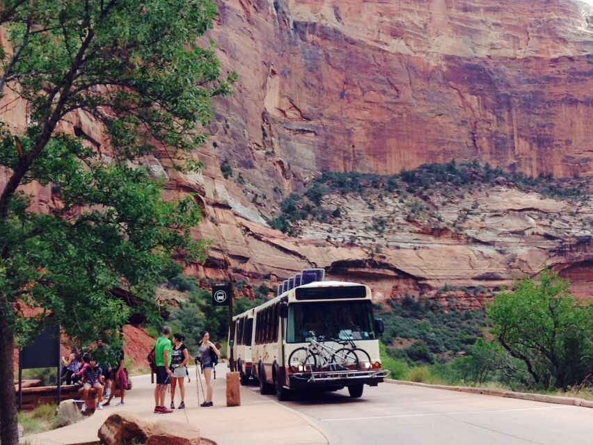 今日は国立公園めぐり。ザイアン国立公園は,環境を守るために,車での移動が禁止されているので,駐車場に停めてめてシャトルバスでの移動となるのですが,朝の10時を過ぎると一杯になってしまうという噂だったので,ホテルの朝食を断念して,午前5時30分に出発しました。