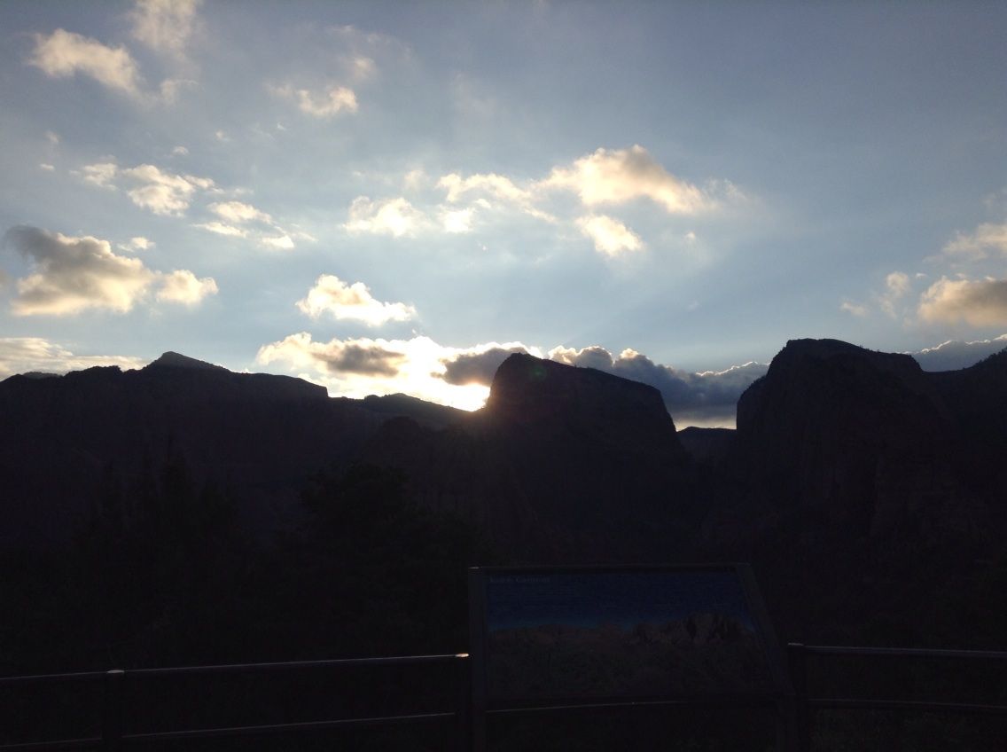 今日はユタ州南部のハリケーンという町のホテルを出発してインターステイツ15を北上,途中ザイオン国立公園のコロブセクションという公園の北側を展望できるコースに立ち寄った所,ちょうど,日の出と遭遇しました。