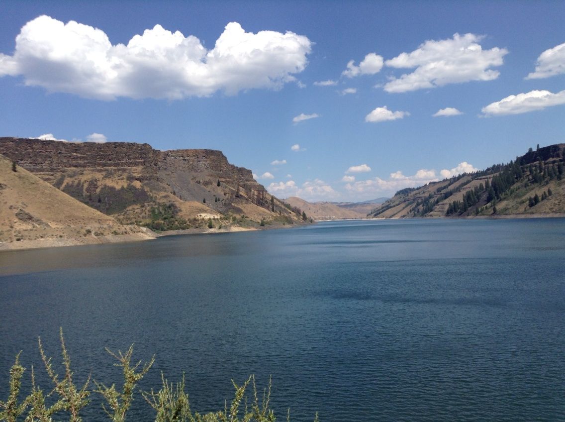 午後は,今度は,町から北東に行ったアンダーソンランチリザーバーというダム湖へ行きました。未舗装の道を進むと,川沿いの道に出て,それは冷たい水が流れていました。わずか数週間前には,氷が流れていたということです。