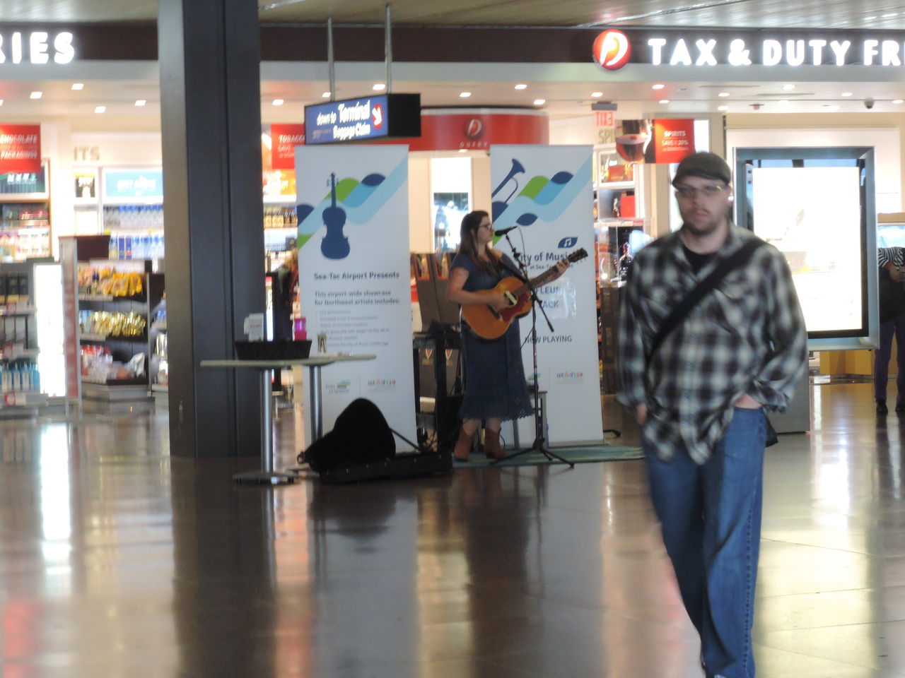 シアトル・タコマ国際空港のコンコースは,ギターを弾く女性がいたりして,ボイジーの空港とはまったく違って華やいでいた。私は,この時までシアトルは狭い空港という認識だったので,のんびりしすぎて,危うく帰国便に間に合わないところであった。決してシアトルは狭い空港ではないのだ。空港内に移動のための地下鉄も走っている。