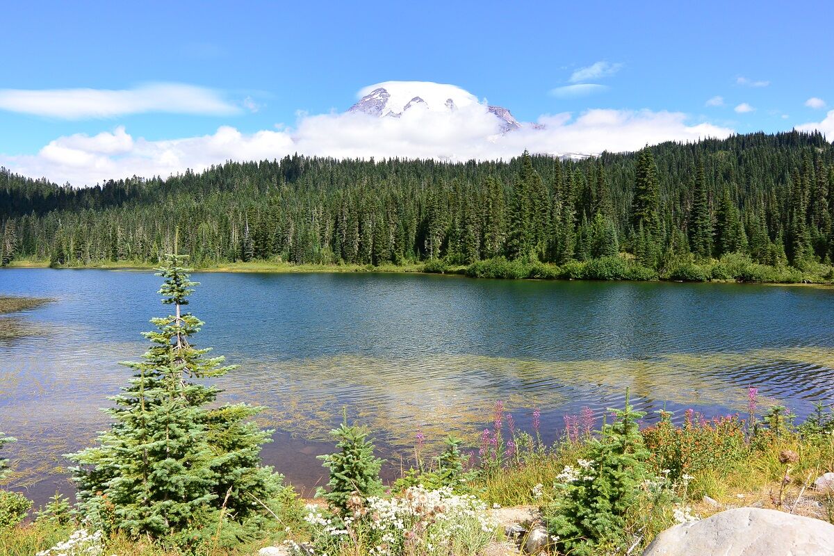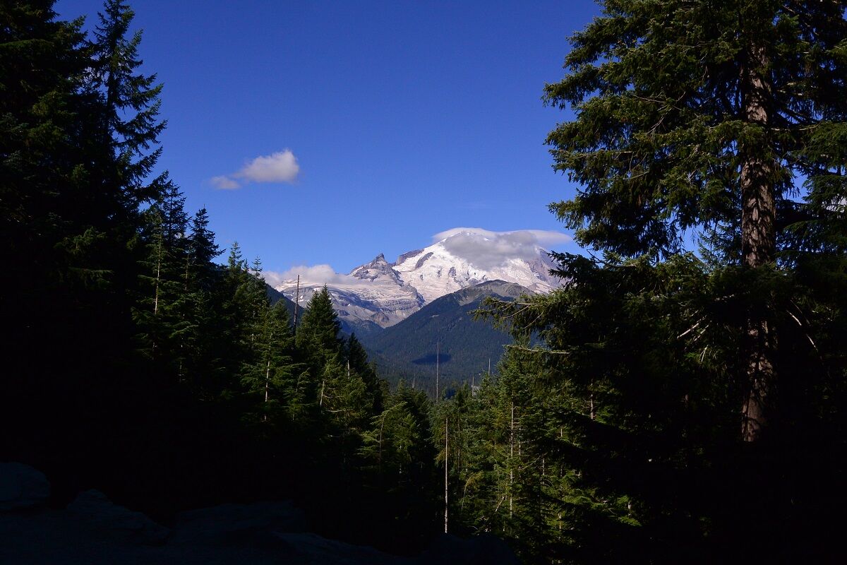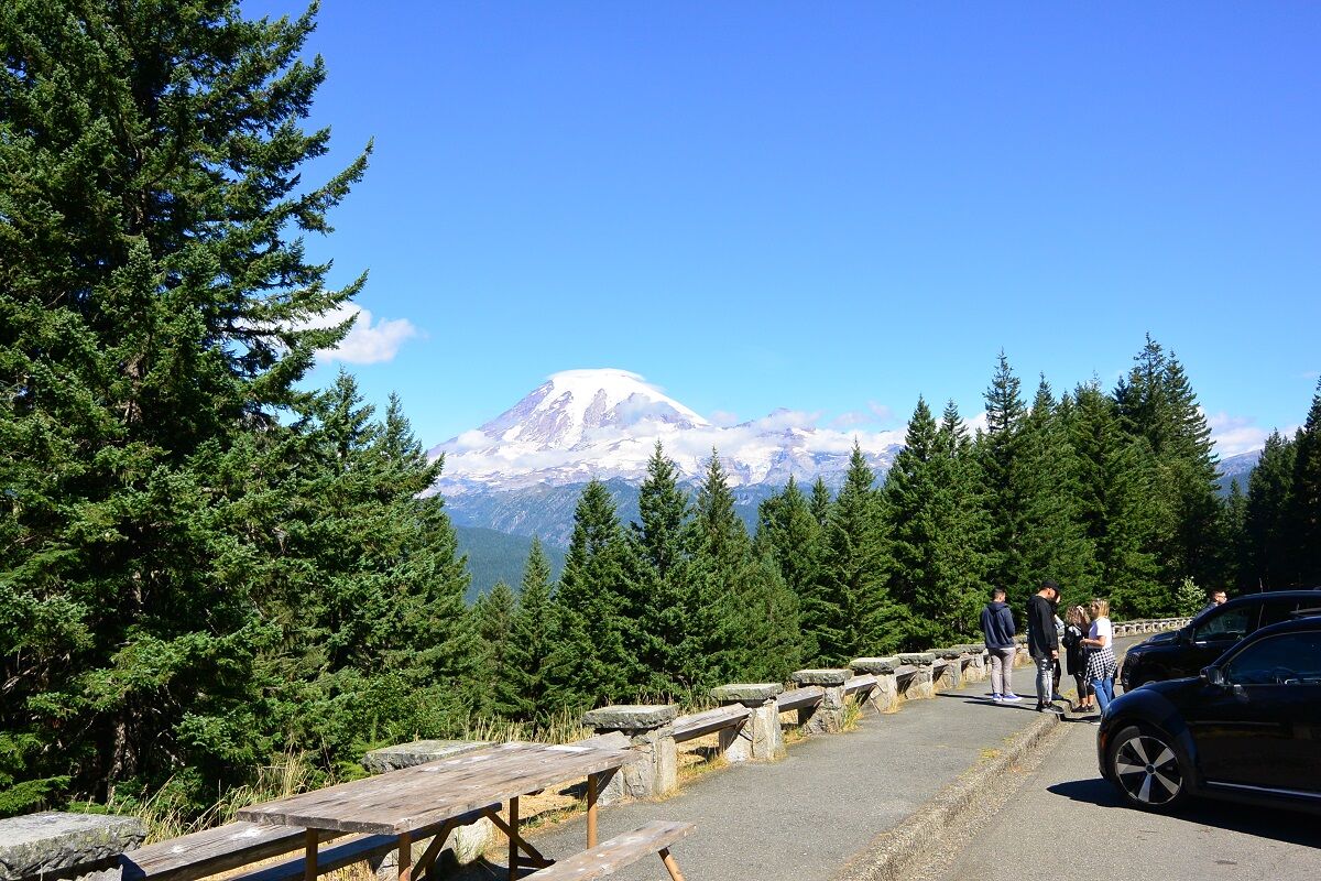まず,北東のコースから登りました。このコースは山頂にウィンディリッジ(Windy Ridge)という展望ポイントがあります。そこまで登る道路は快適なのですが,そのまわりは火山の噴火による爆風で倒れた樹木が無残な姿をさらしていて,それは壮観でした。また,途中にスピリットレイク(Spirit Lake)という大きな美しい湖が眺められました。