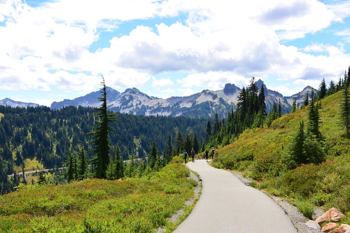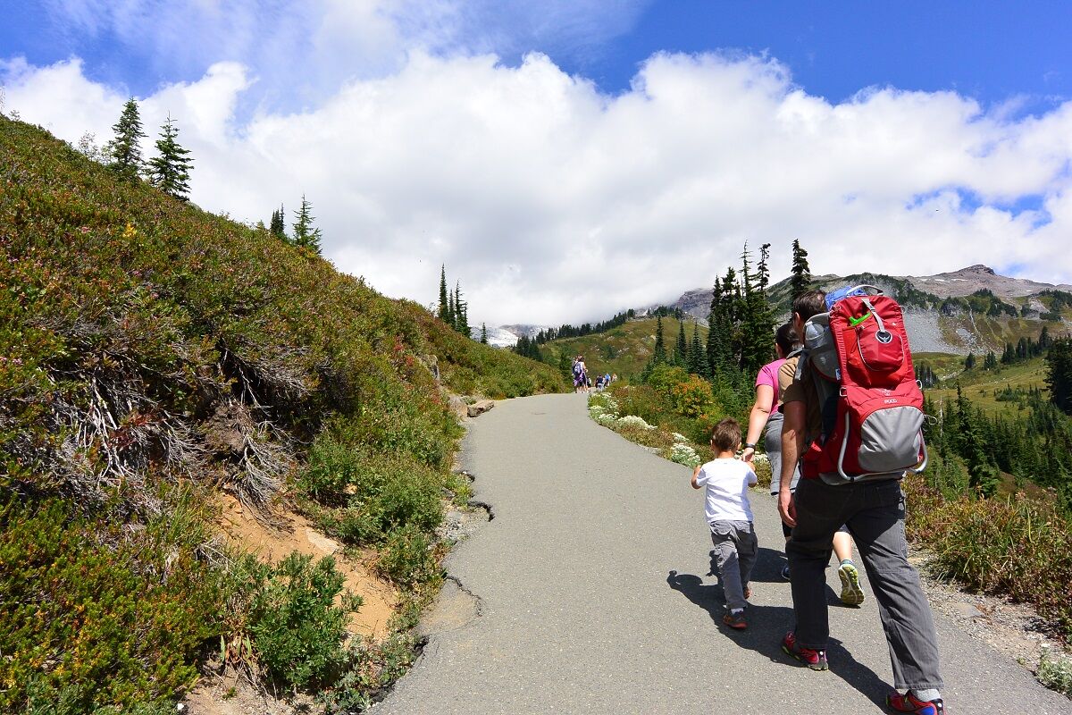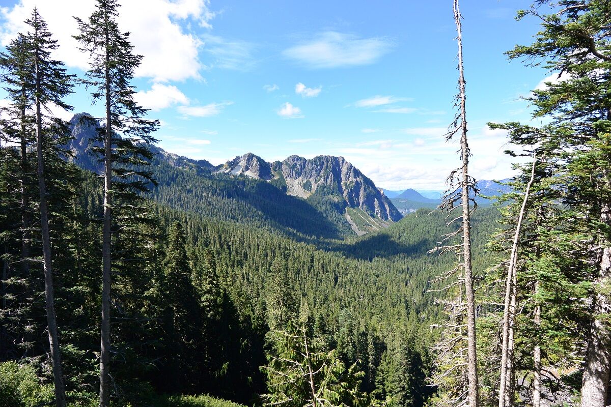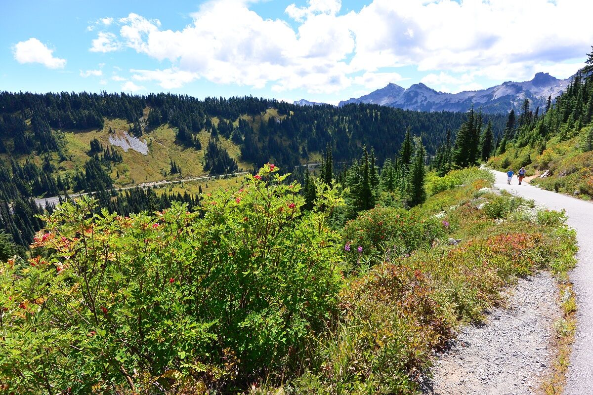 まず,北東のコースから登りました。このコースは山頂にウィンディリッジ(Windy Ridge)という展望ポイントがあります。そこまで登る道路は快適なのですが,そのまわりは火山の噴火による爆風で倒れた樹木が無残な姿をさらしていて,それは壮観でした。また,途中にスピリットレイク(Spirit Lake)という大きな美しい湖が眺められました。