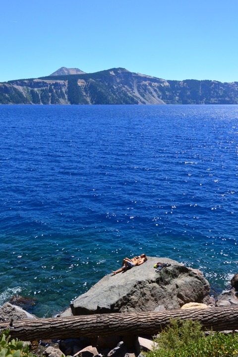 さて,このクレーターレイク国立公園はカルデラ湖。世界で7番目に深い湖だそうで,ものすごくきれいです。湖の外周を走りながらその景色を楽しむことと,トレイルを歩いて,湖まで行くことができます。