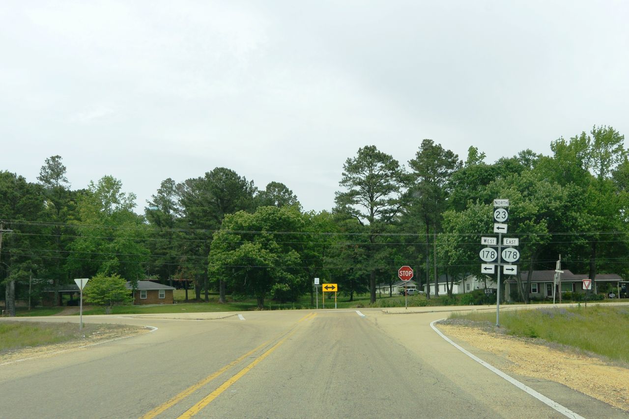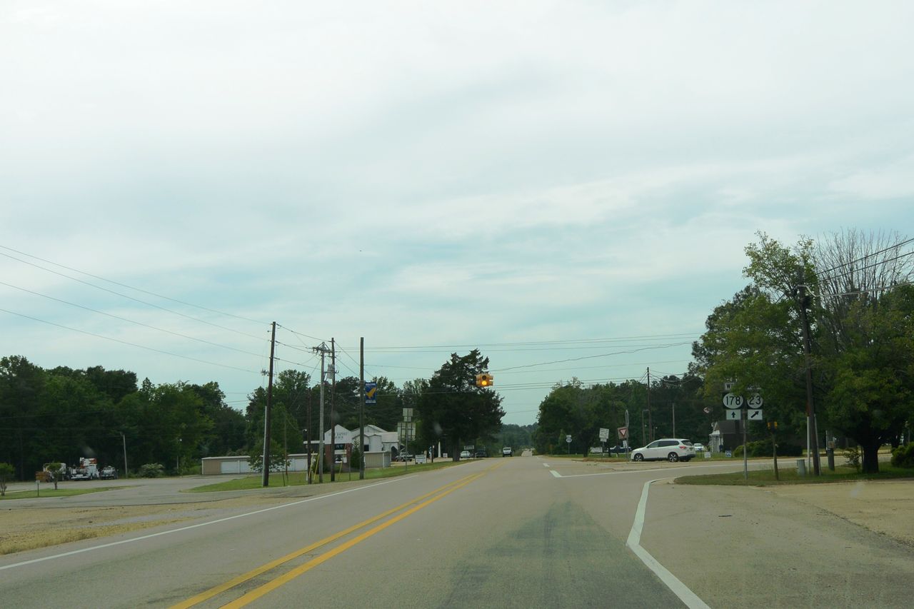 まず,トゥペロのダウンタウンから州道178を西に少し走って,国道45に入り,北に向かって国道45をしばらく走って,今日のはじめに書いた国道78に乗った。そして,国道78をそのまま東南東へ走っていった。そして,州道23とのジャンクションまで行って,ショートカットをするために州道23に進路を変えて,北に向かって走った。さらにまた,少し走っていくと,道路は東西を走る178とぶつかり,ここを少し西へ,つまり少しだけ遠回りして走っていく。その間は,州道23との併用区間である。そして,再び,州道23は分離して北北東に向かって進む。