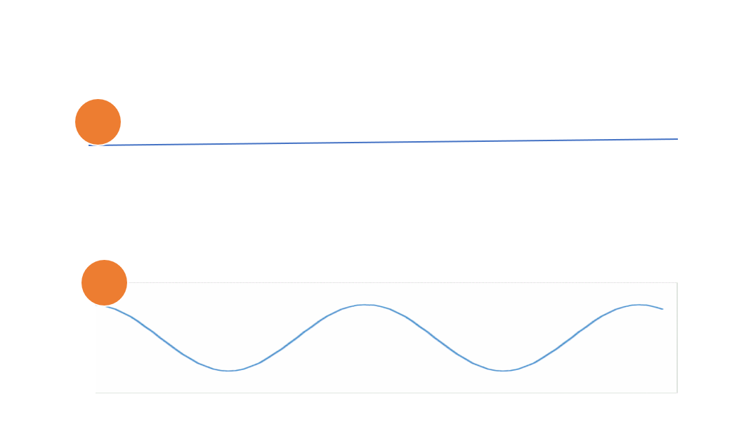 物理学で,ボールを転がすとき,平坦な面で転がすよりも,曲がりくねった(正弦曲線のような)面で転がしたほうが早い,というのが物事の真実を突いているのです。