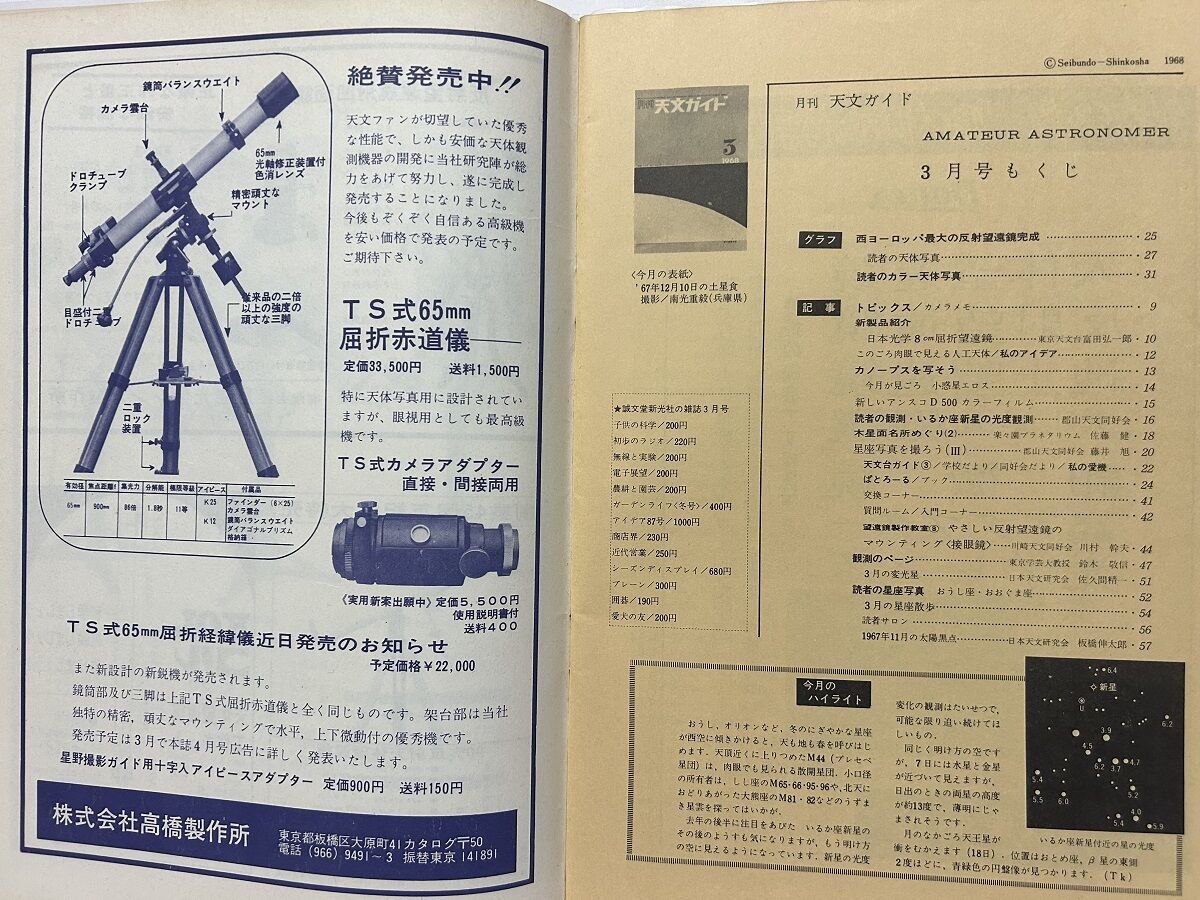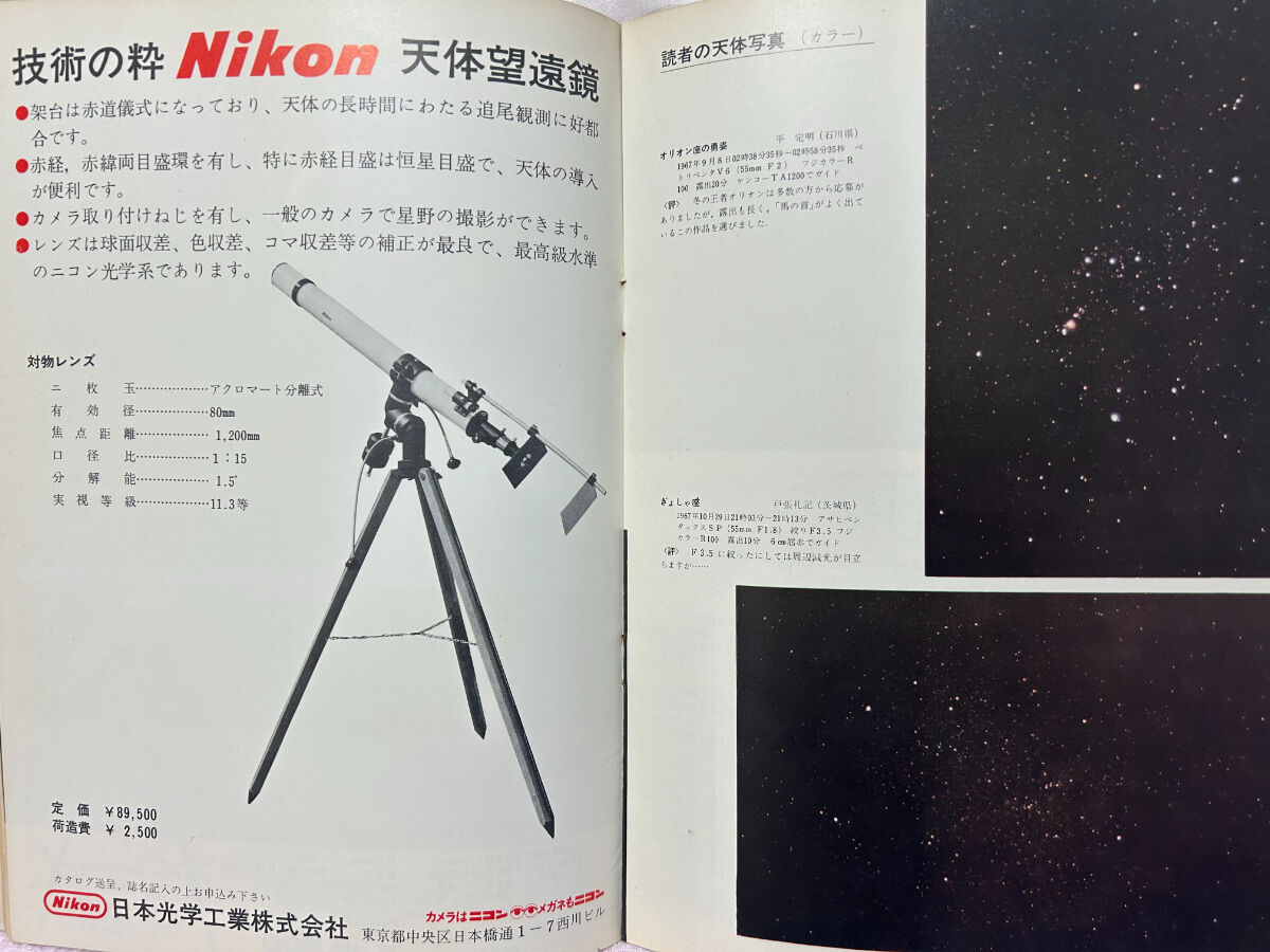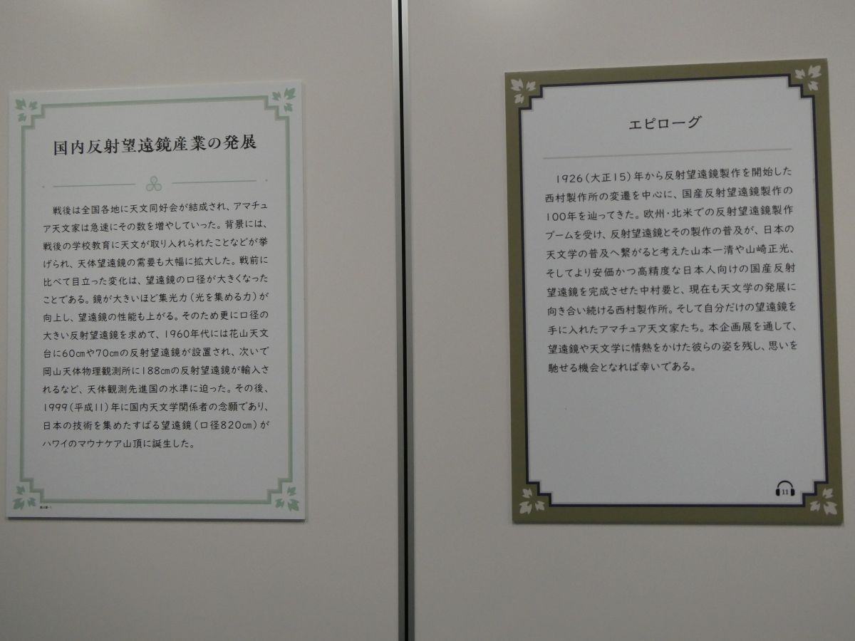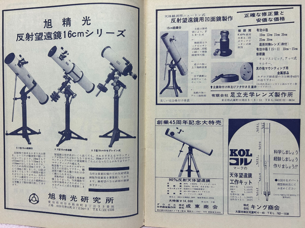 今の若い人はともかく,私の年代では,この企画展でとりあげられていた人物や反射望遠鏡はレジェンドであり,また,実態が謎でした。それは,創刊当時の「月刊天文ガイド」が「子供の科学」という少年雑誌の延長線上にあって,京都大学御用達の西村製作所の広告もなく,そうした天文学の専門家とは一線を画していたからだったのです。そして,そういった高度な知識集団に憧れてもいました。