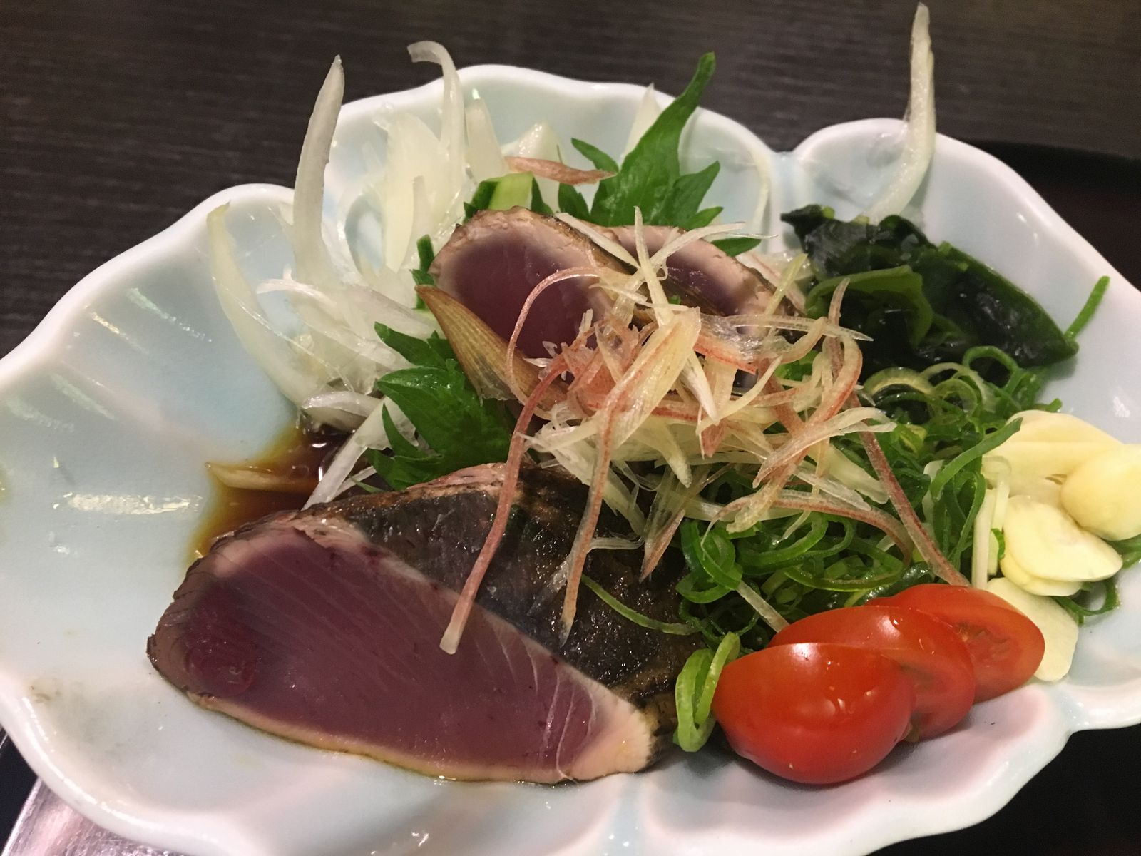 ということですが,今回は,限られた季節(3月から5月,9月から11月)だけにしか味わえないという鰹の塩たたきがあったので,これを注文しました。